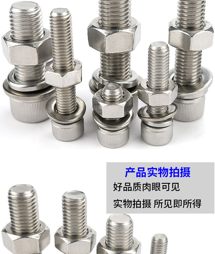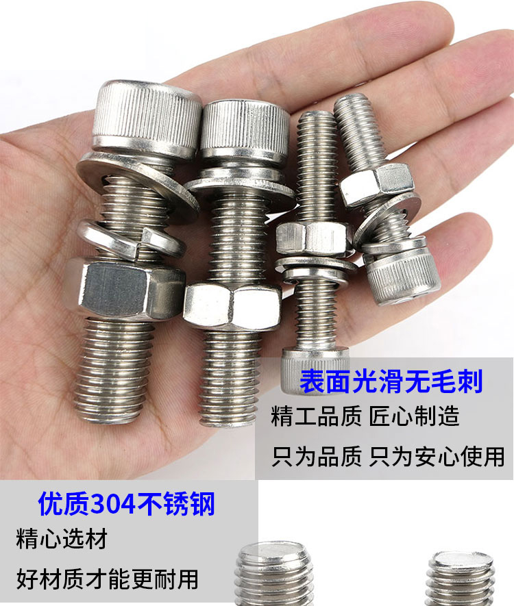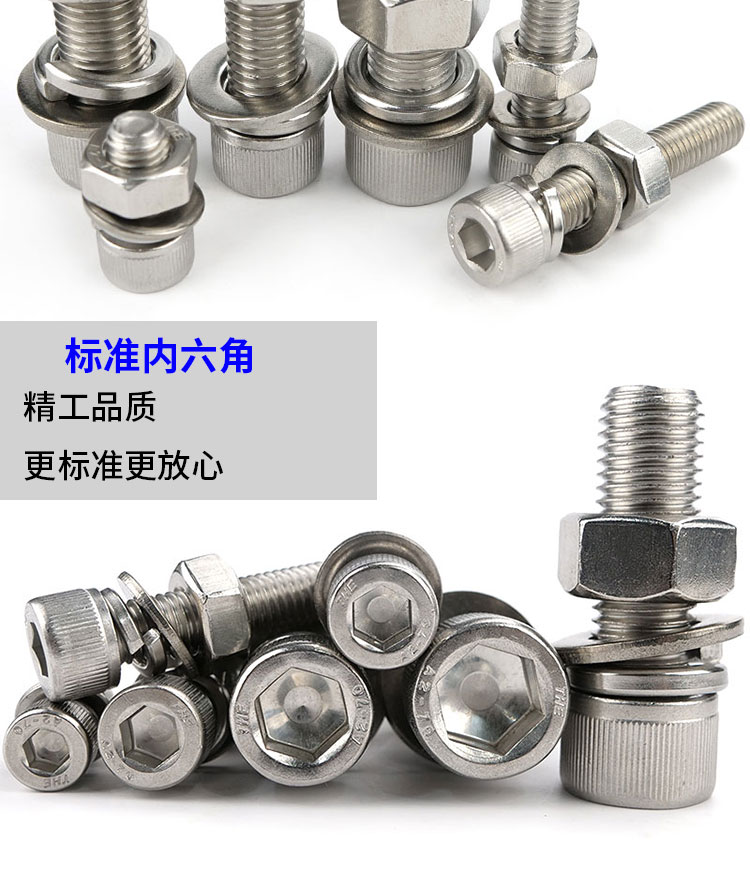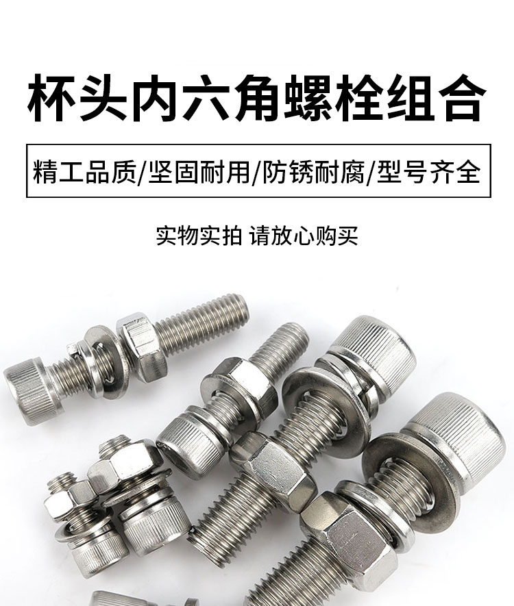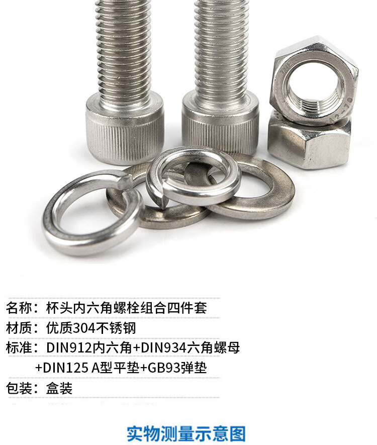 海斯迪克 304不锈钢杯头内六角平弹垫螺母四件套 KJ47-1 DIN912 本色 M3*4 100套 1包