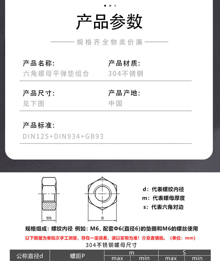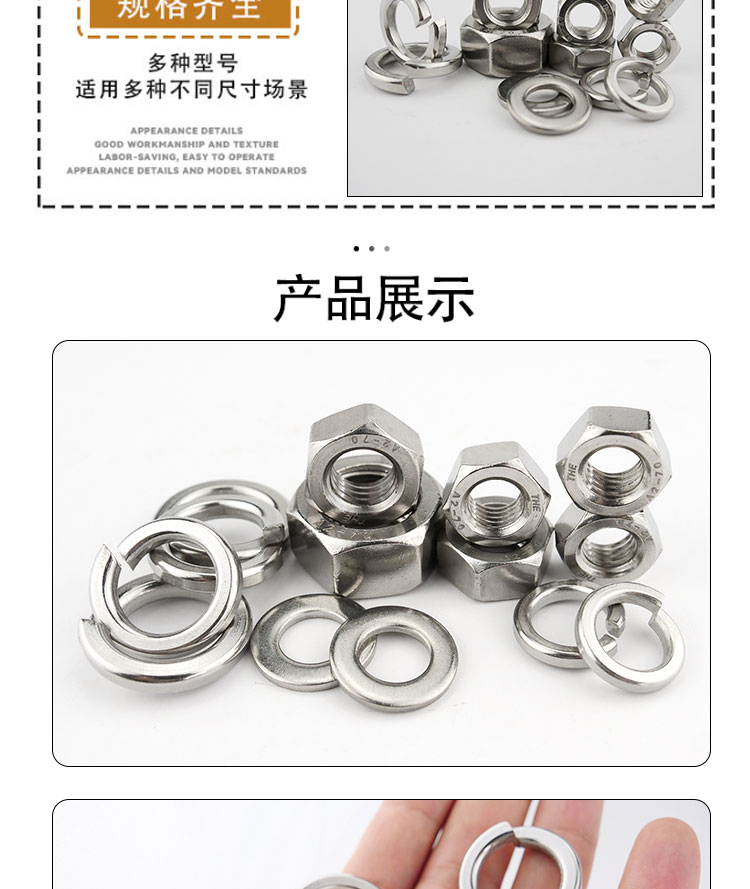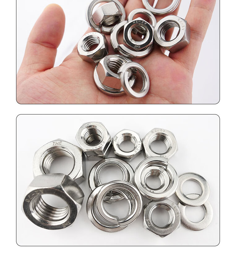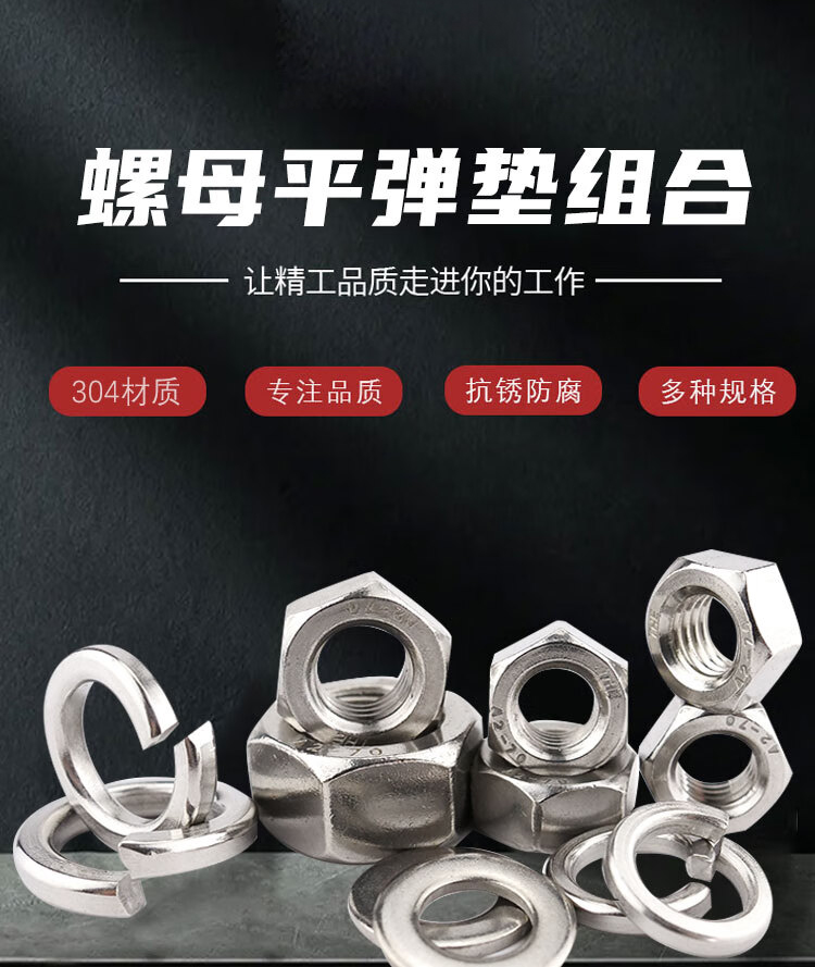 • 商品名称:海斯迪克 304不锈钢六角螺母平垫弹垫三组合