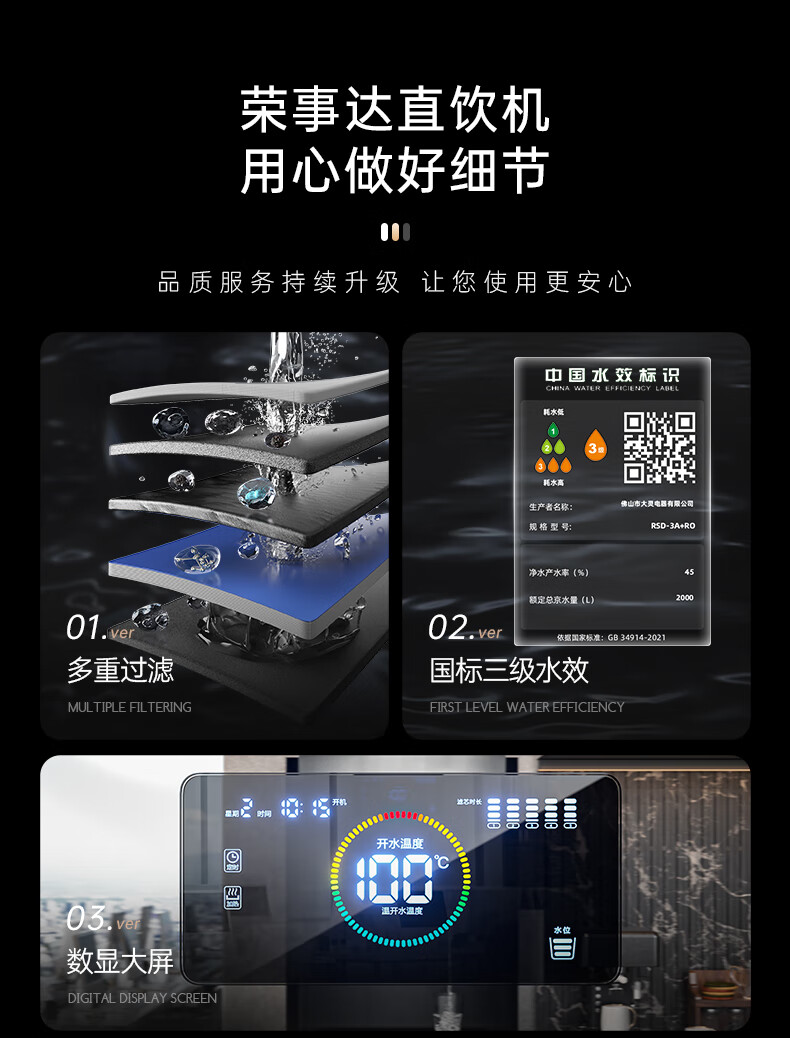 荣事达 五级RO冷热一体直饮机 RSD-3A+RO 一开一温一冰 27L 1台