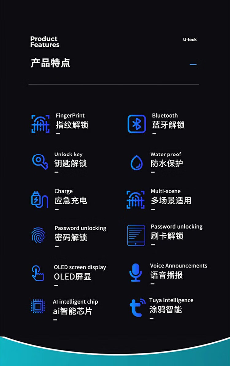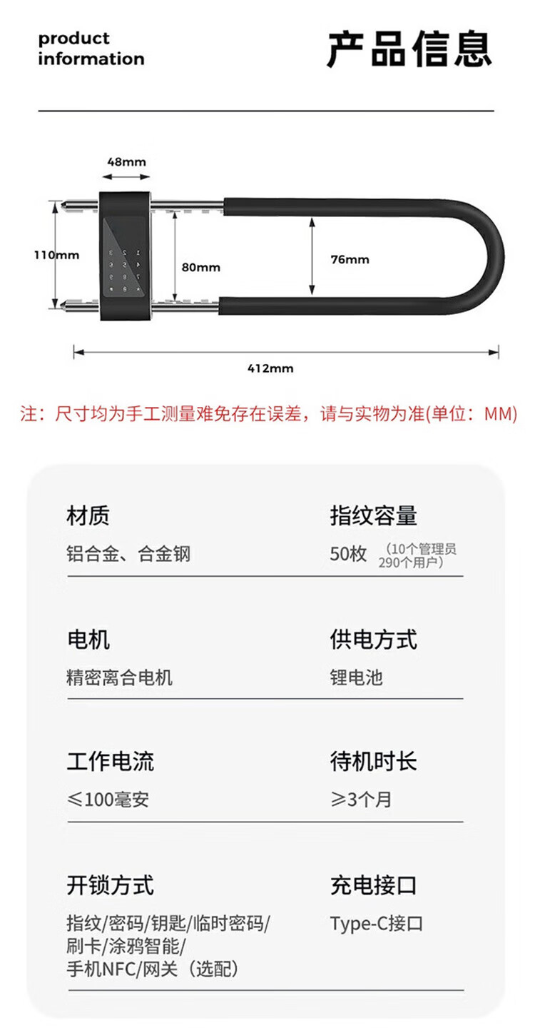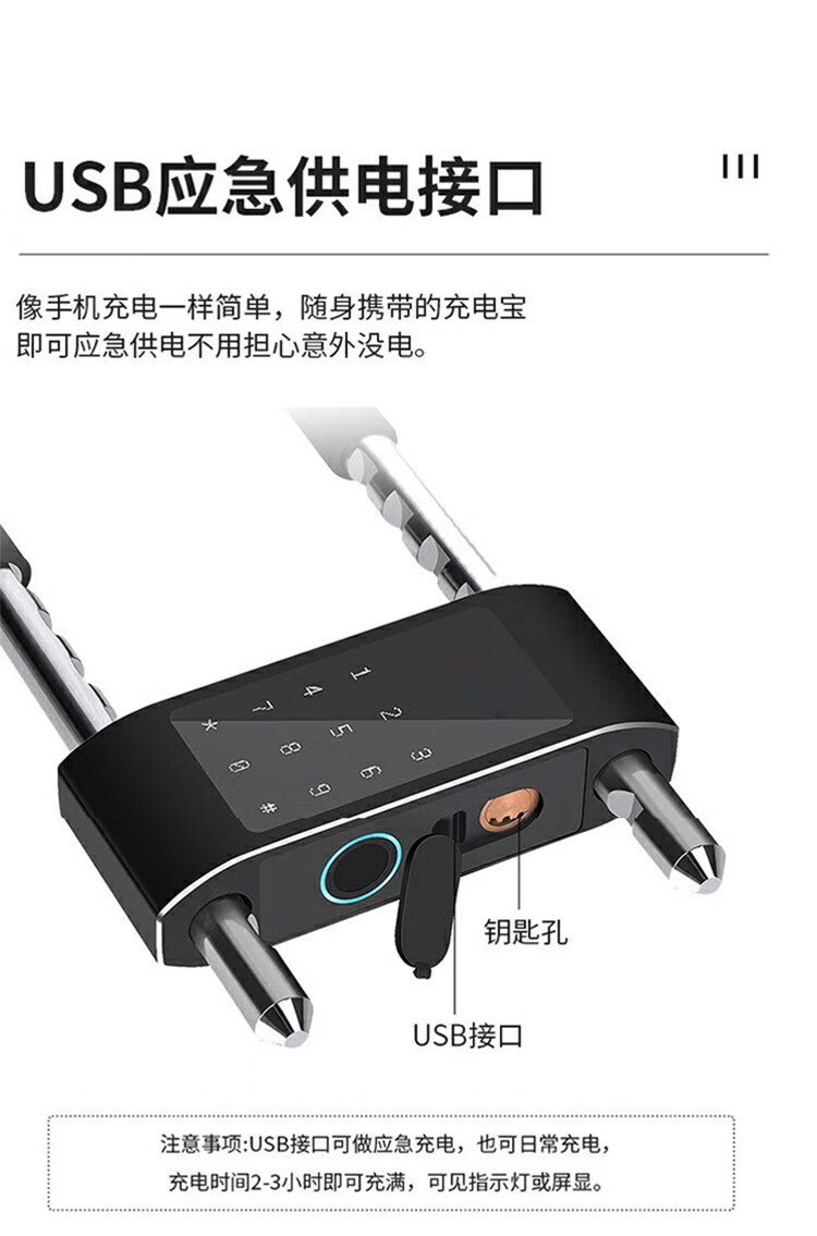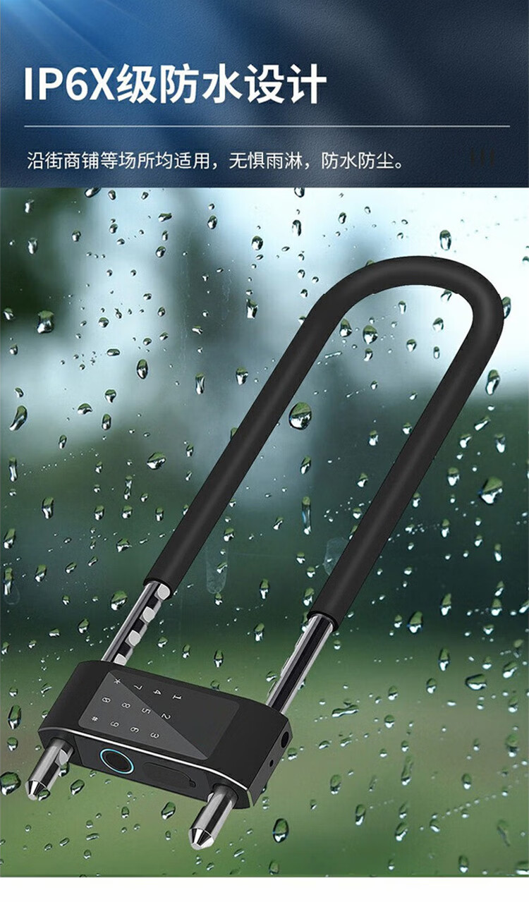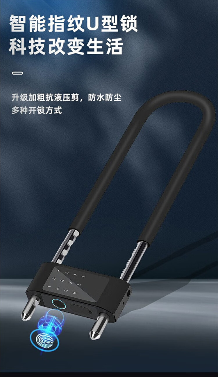 金固牢 智能指纹U型锁 HCZH-446 铝合金/合金钢 412*110mm 1个