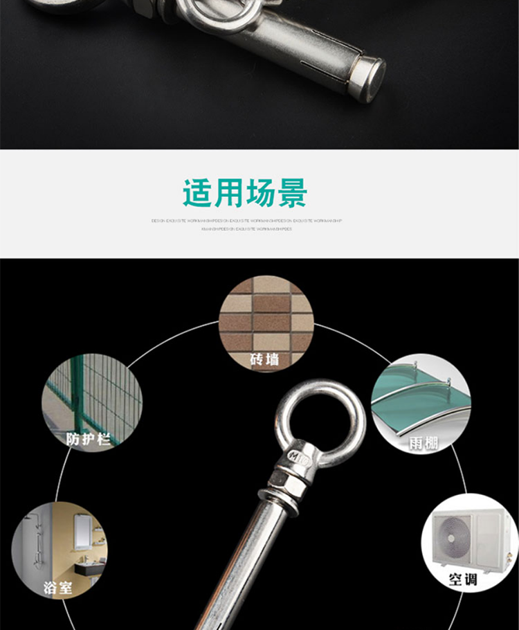 首页>紧固密封件>紧固件>其他类紧固件>吊环螺丝>海斯迪克 304不锈钢吊环膨胀螺丝