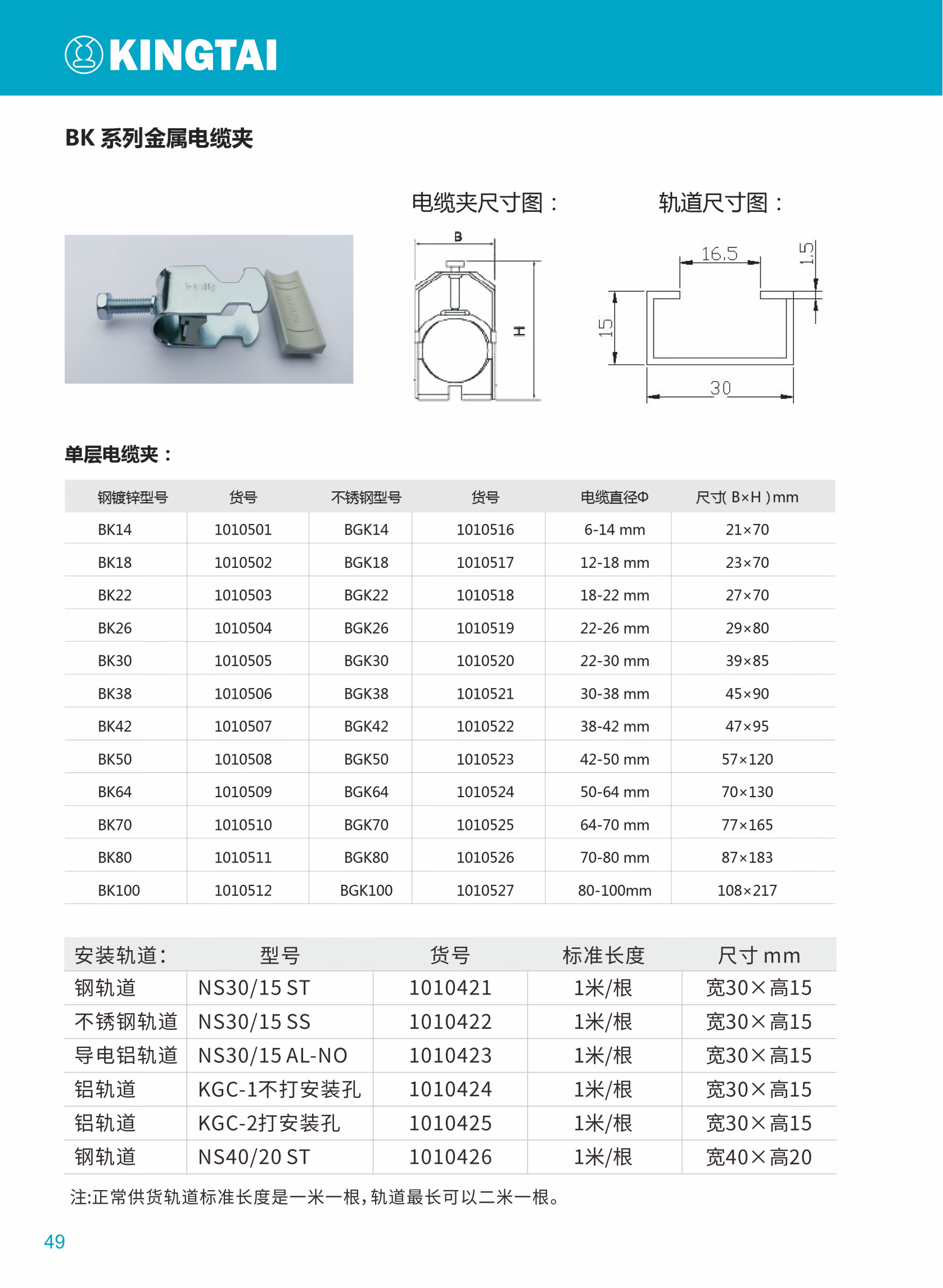KINGTAI 金属电缆夹 BK22 1只