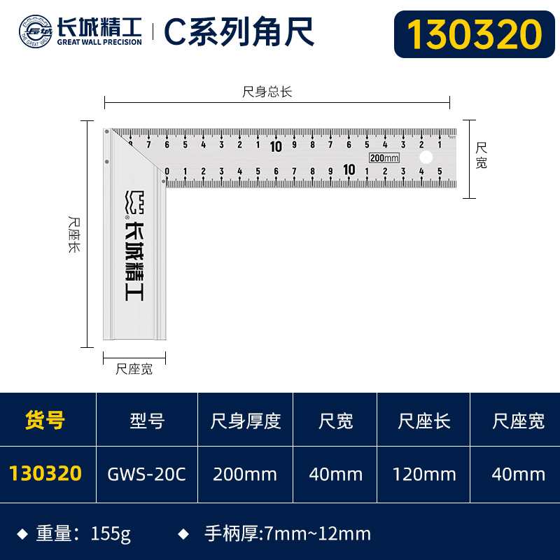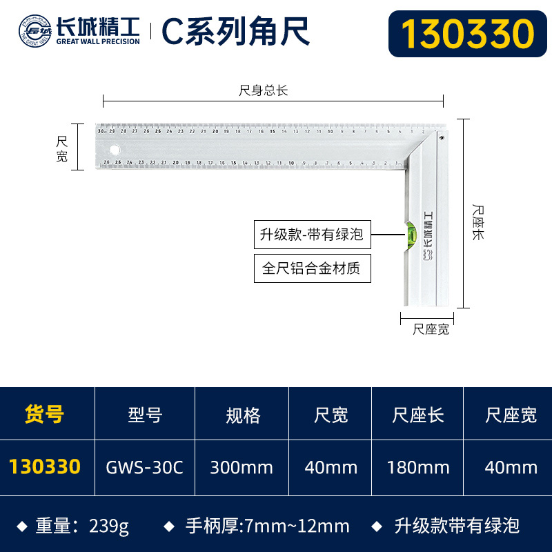长城精工 铝合金角尺 130330 GWS-30C 300mm 1个