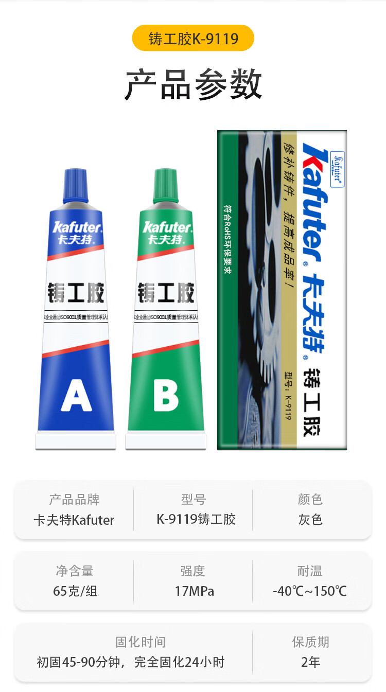 卡夫特 铸工AB胶 K-9119 65g 灰色 1盒