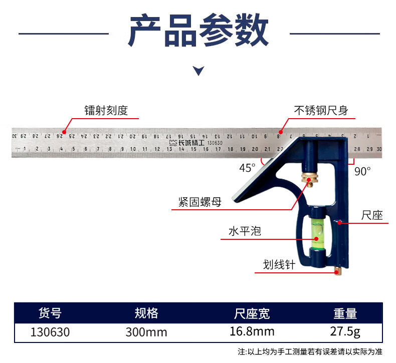 长城精工 组合角尺 130630 300mm 1把