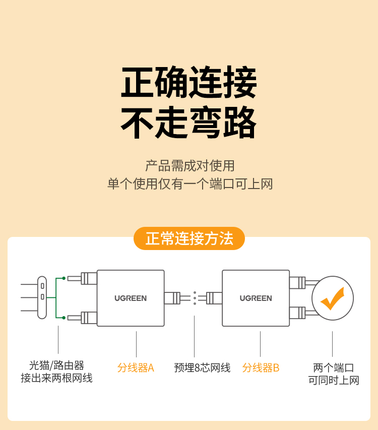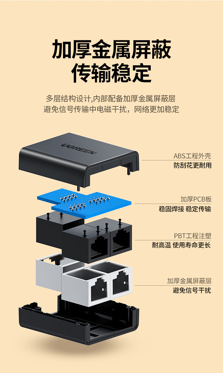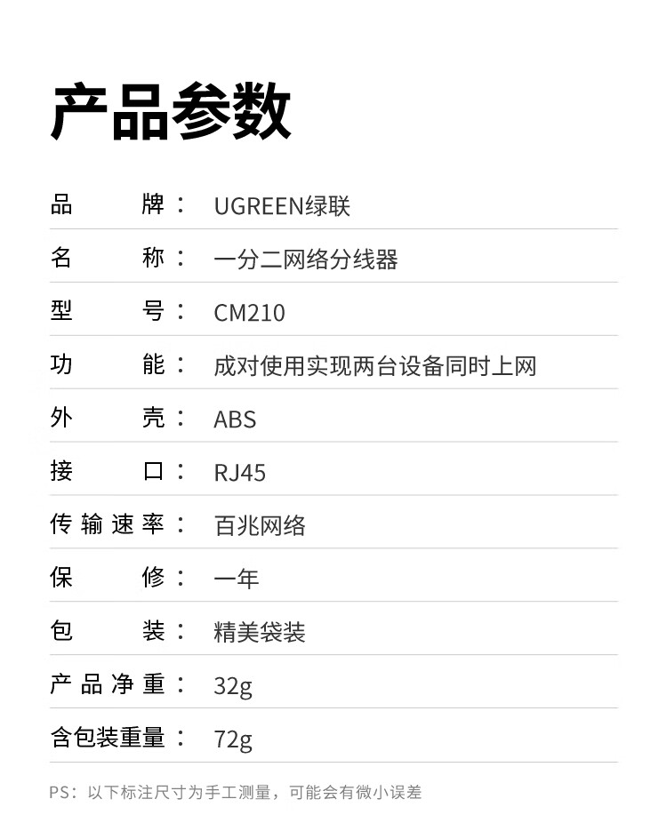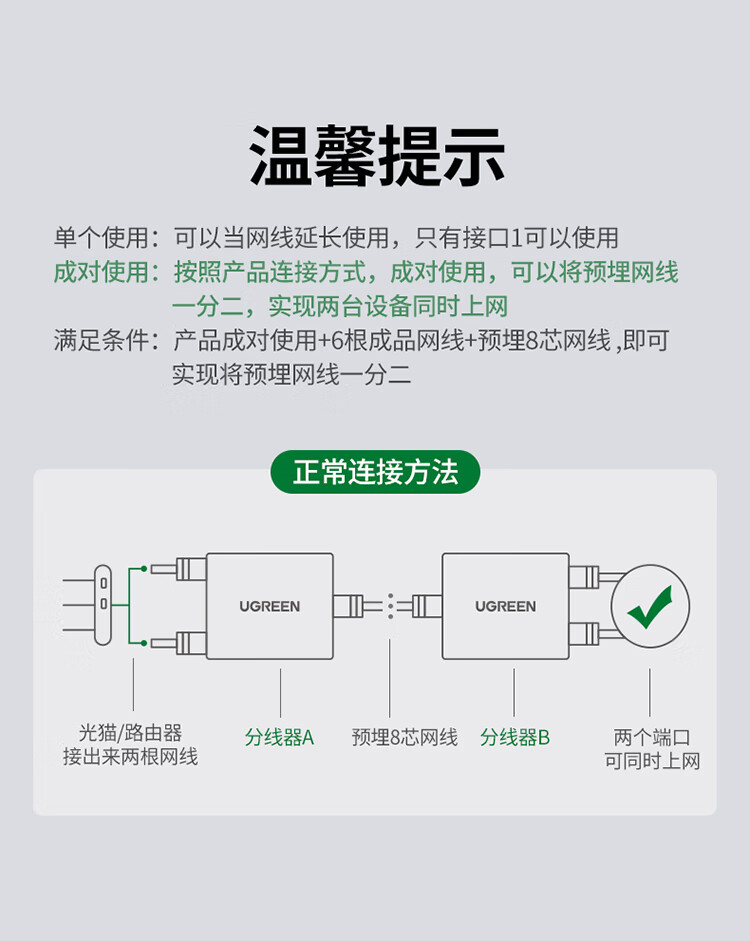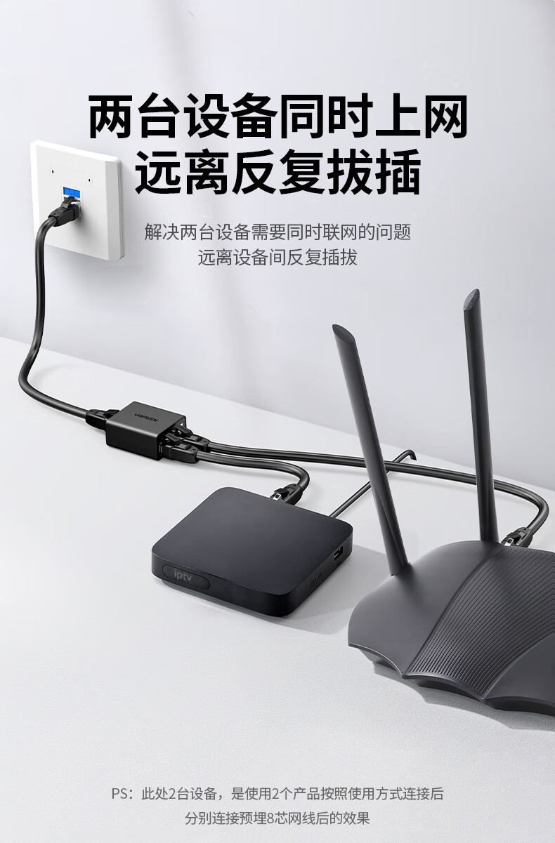 绿联 RJ45网络双网口延长器 50923 一分二 40.522*45mm 2个 1包