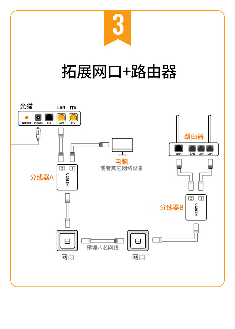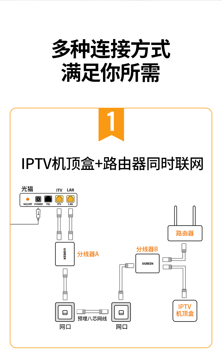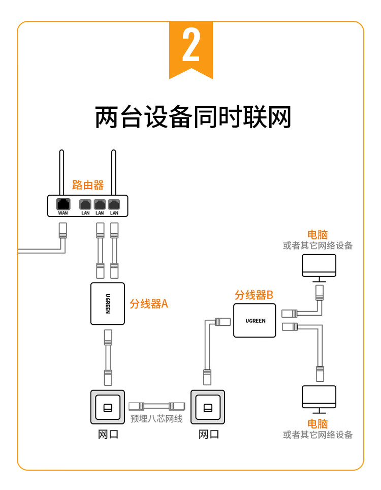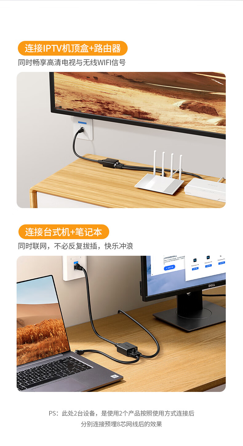 绿联 RJ45网络双网口延长器 50923 一分二 40.522*45mm 2个 1包