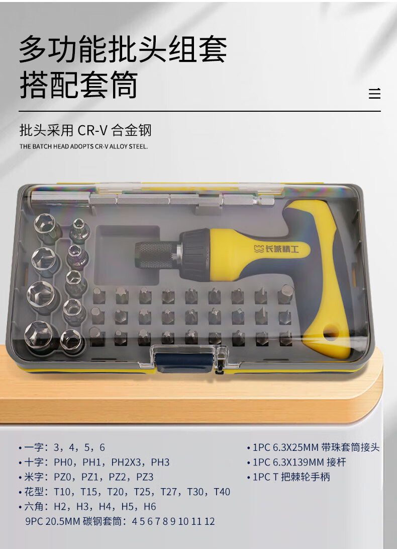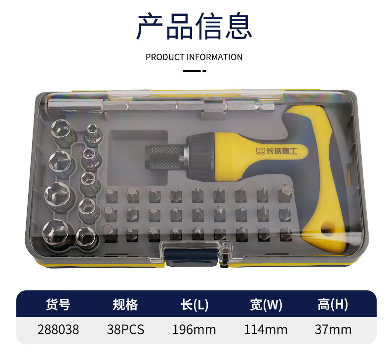长城精工 38件T型棘轮螺丝批 288038 38PCS 1套