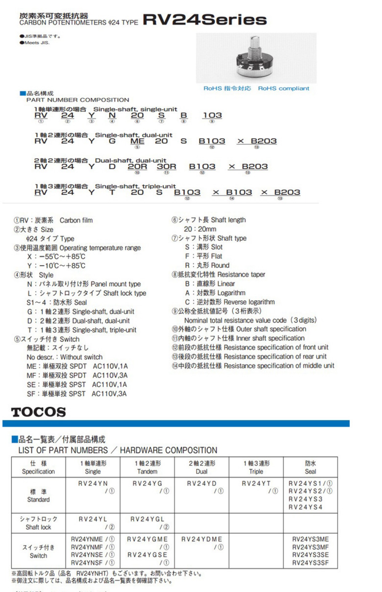TOCOS 碳膜电位器 RV24YN20SB202 1个