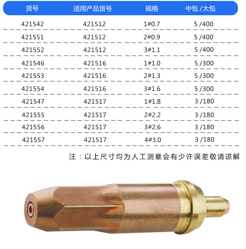 长城精工 乙炔割嘴 421547 1#1.8 1个