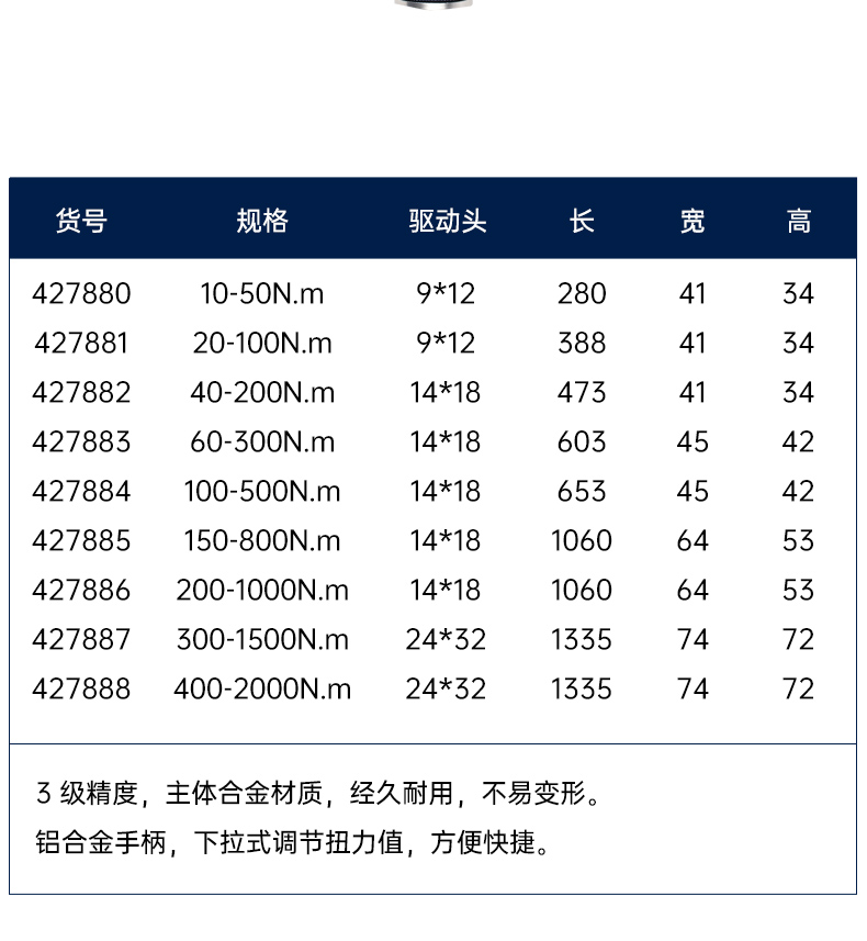 长城精工 14*18系列可换头可调式扭力扳手 427883 合金 60-300N.m 1把