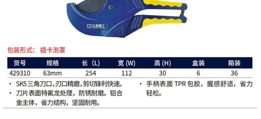 长城精工 塑料管子割刀 429310 63mm 1把