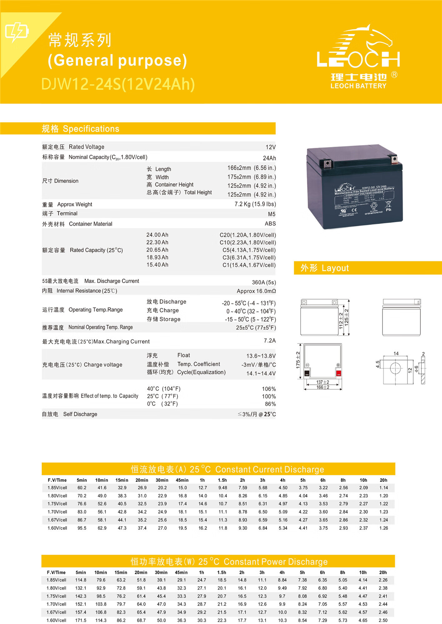 理士电池 免维护蓄电池 12V 24AH DJW12-24 1块