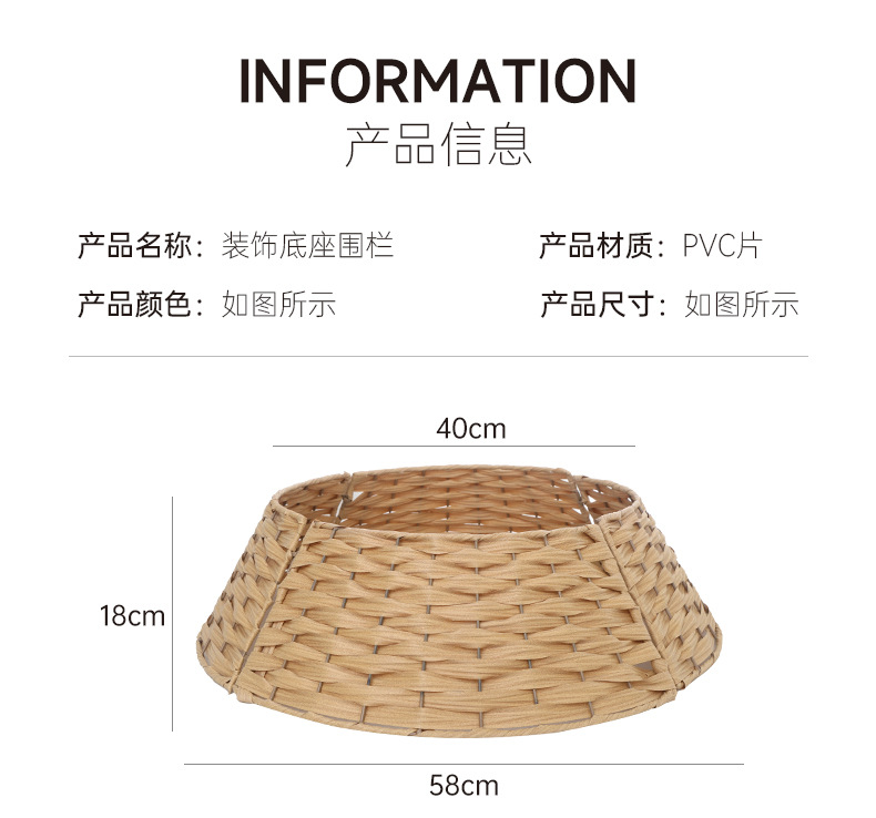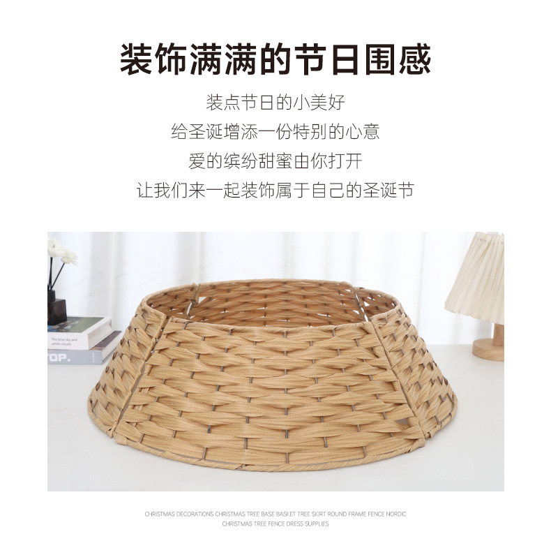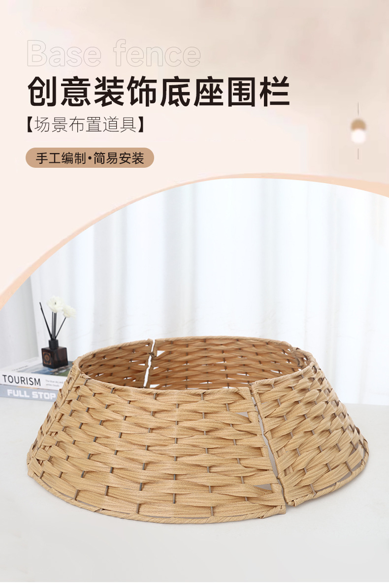 国产通用 藤编圣诞树底座围栏 卡其色 大号 上直径50cm 下直径66cm 高22cm 1件