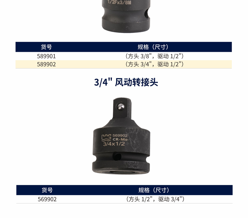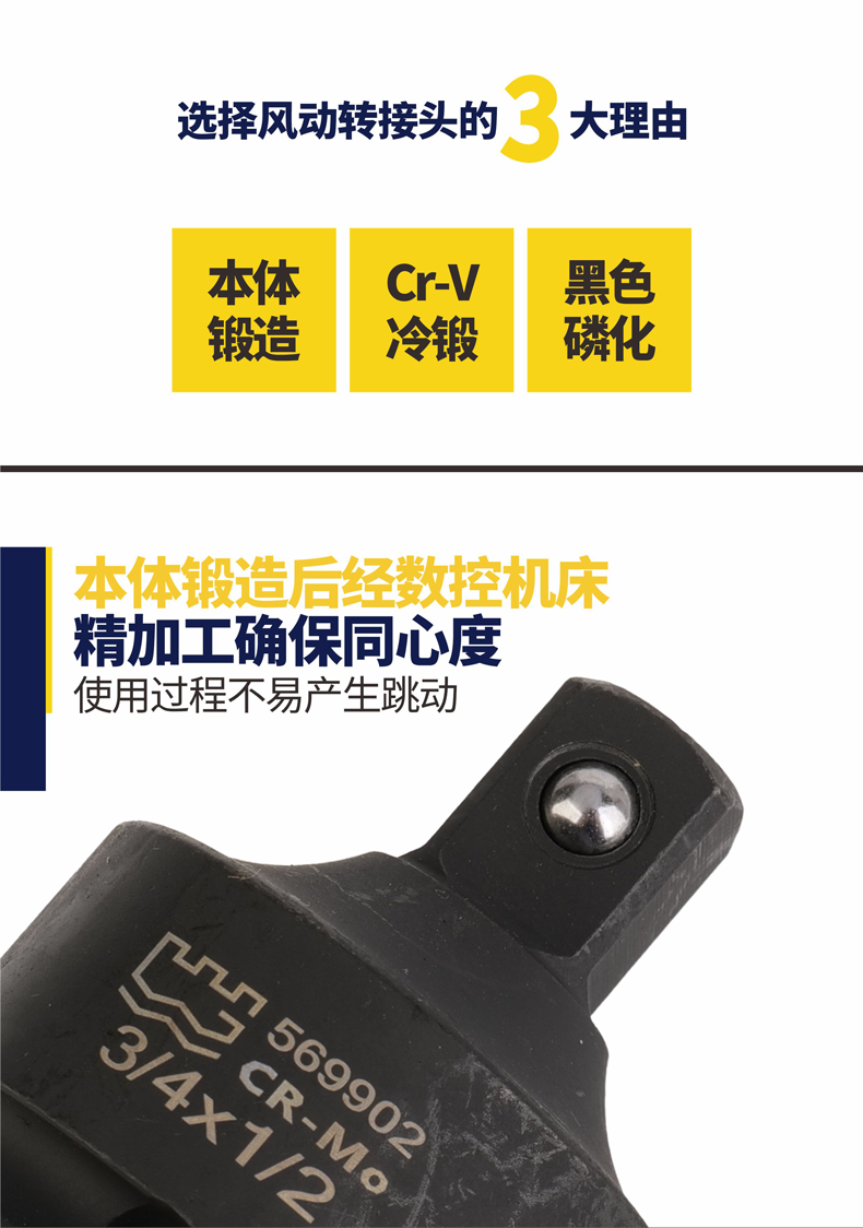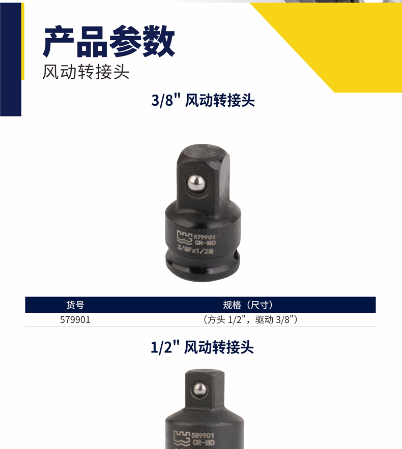 长城精工 风动转接头 589901 方头3/8",驱动1/2" 1个