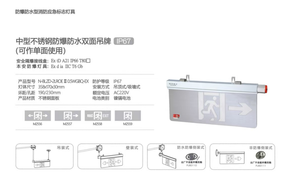 敏华电工 中型不锈钢防爆防水双面吊牌 NBLZD-2LROEⅡ05WGBQ-EX M2557 单面右向 AC220V 1个