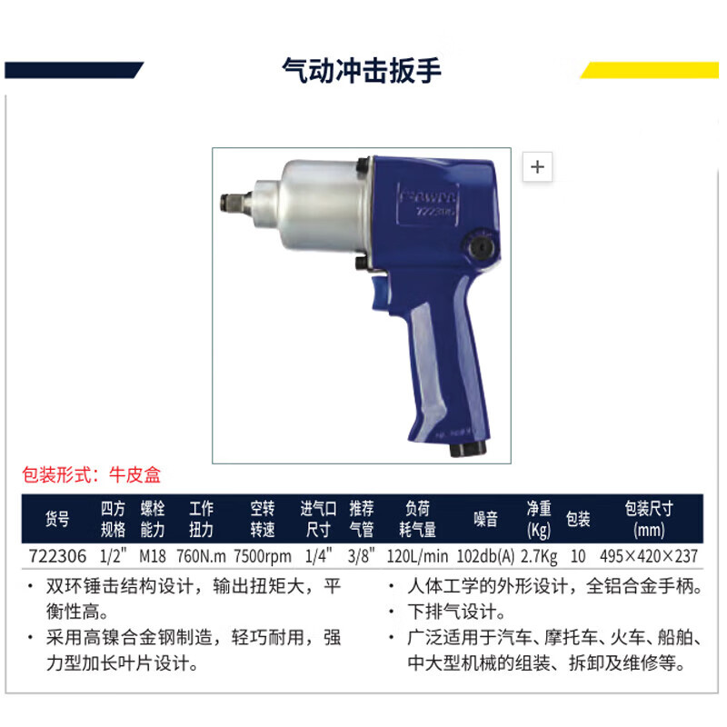 长城精工 气动冲击扳手 722306 1/2" 1把
