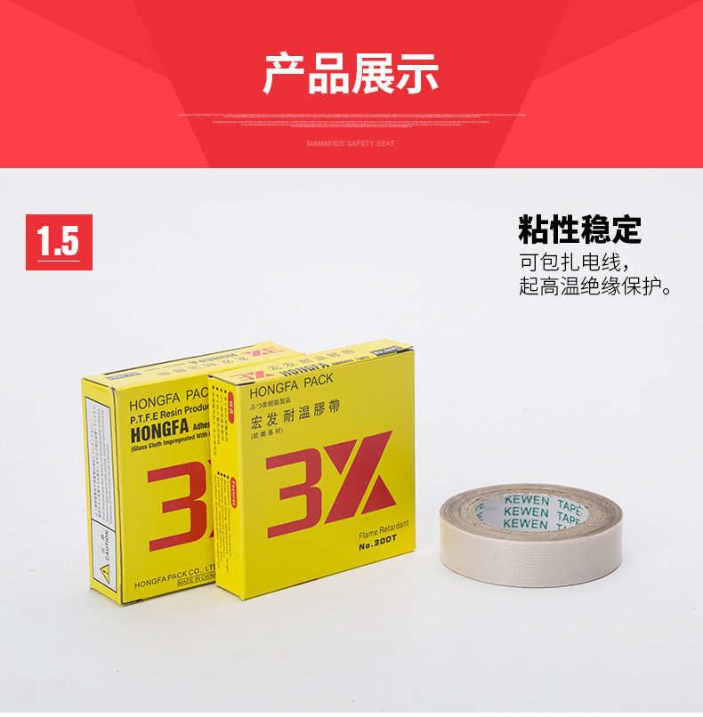 宏发 高温胶带 0.13mm*50mm*10m 1卷