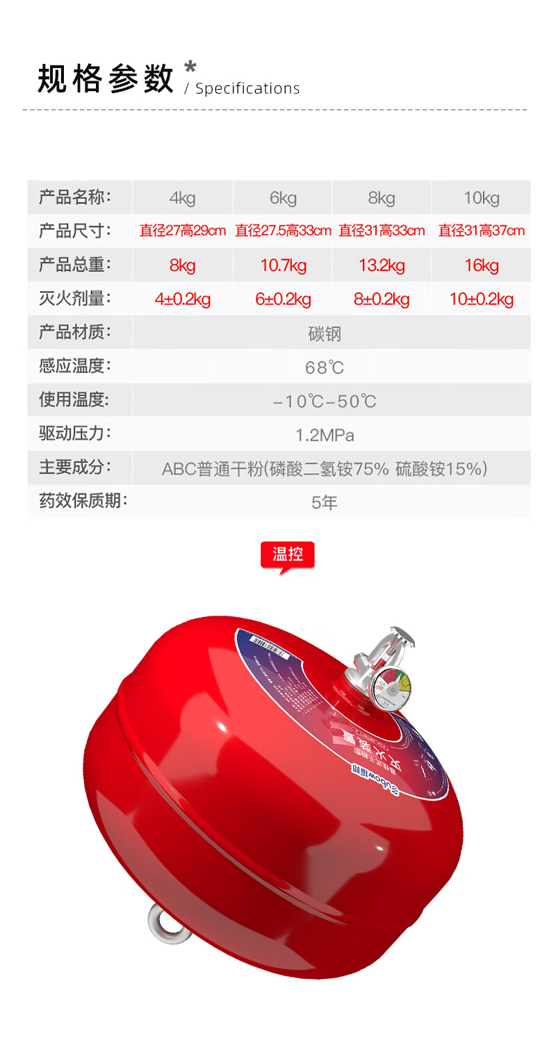援邦 悬挂式灭火器 FZX-APT8/1.2 普通干粉 8kg 1个