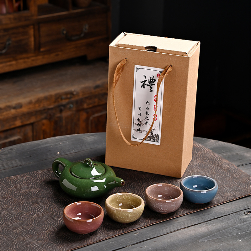 北歌 茶杯茶具伴手礼品盒 白色 冰裂6杯鱼杯 1套