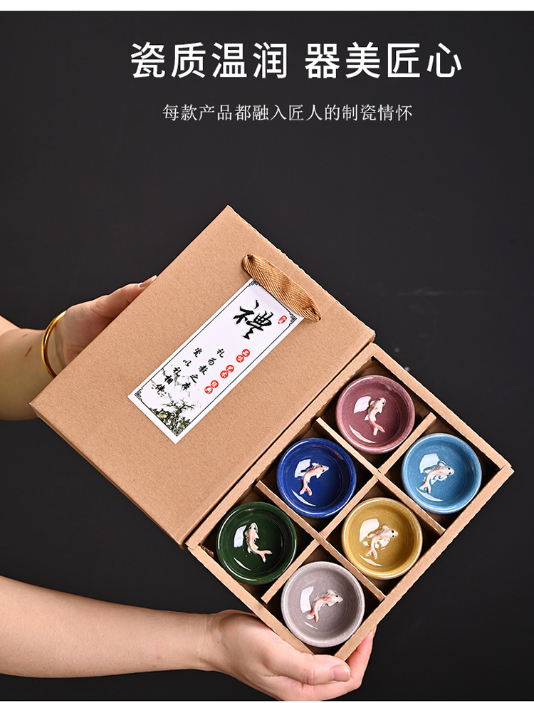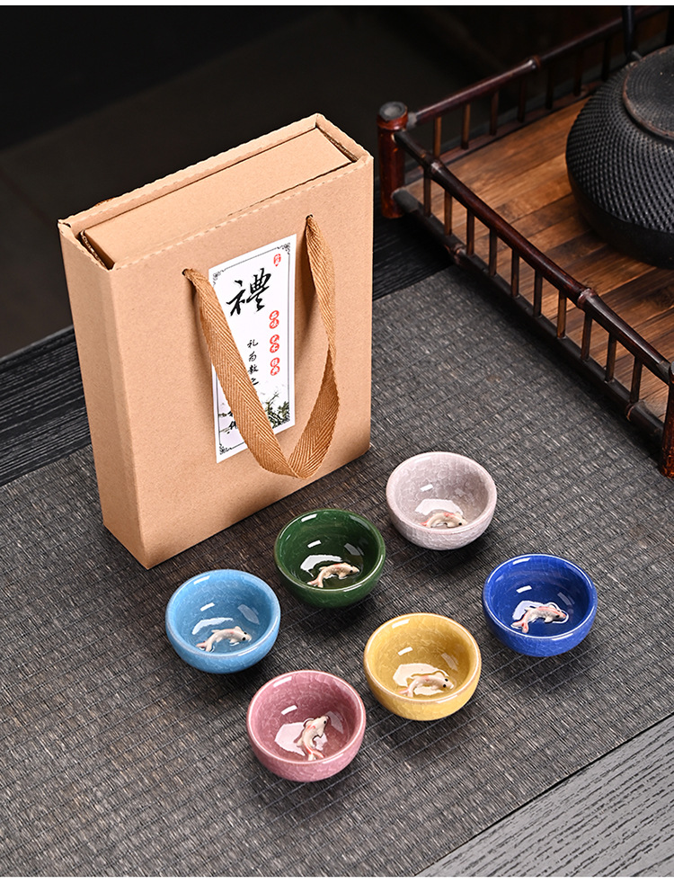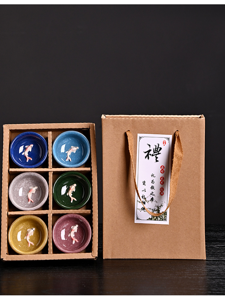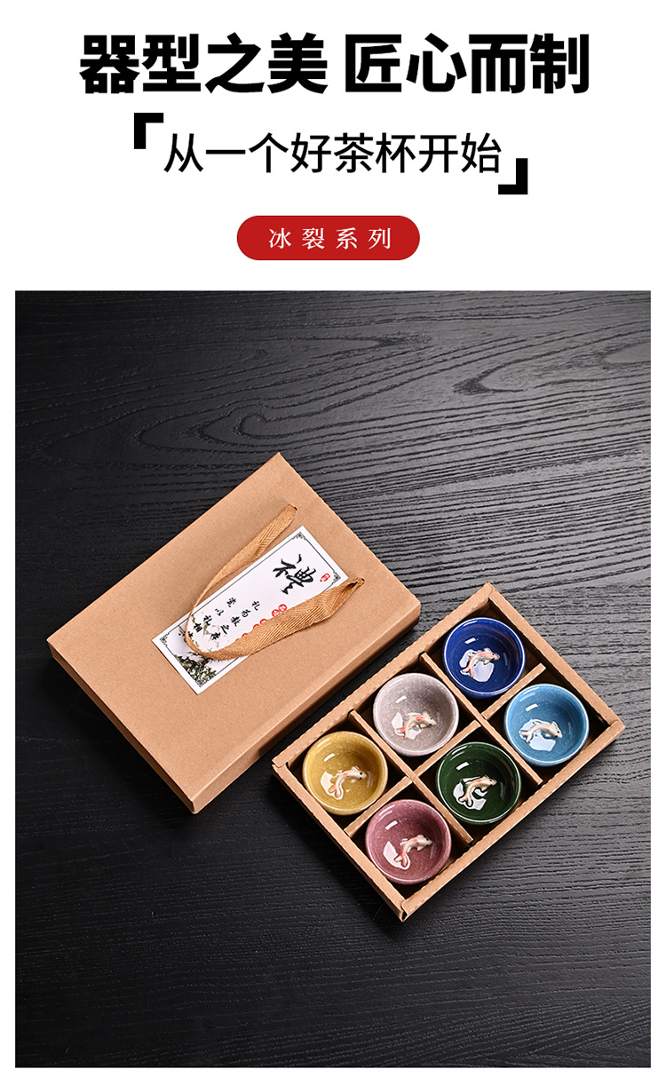 彩色 冰裂6杯鱼杯