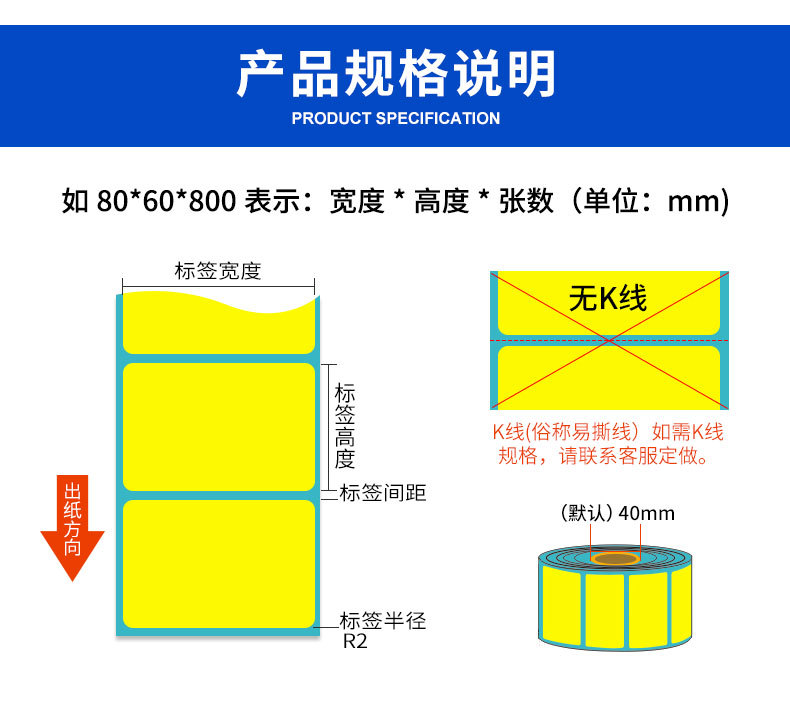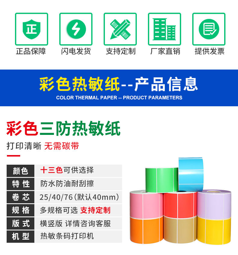 国产通用 三防彩色热敏纸 绿色 85*65*2mm 1卷