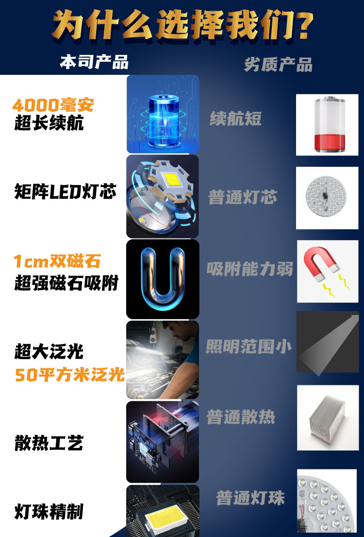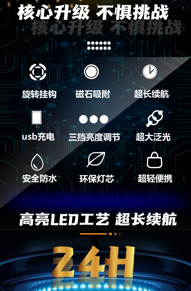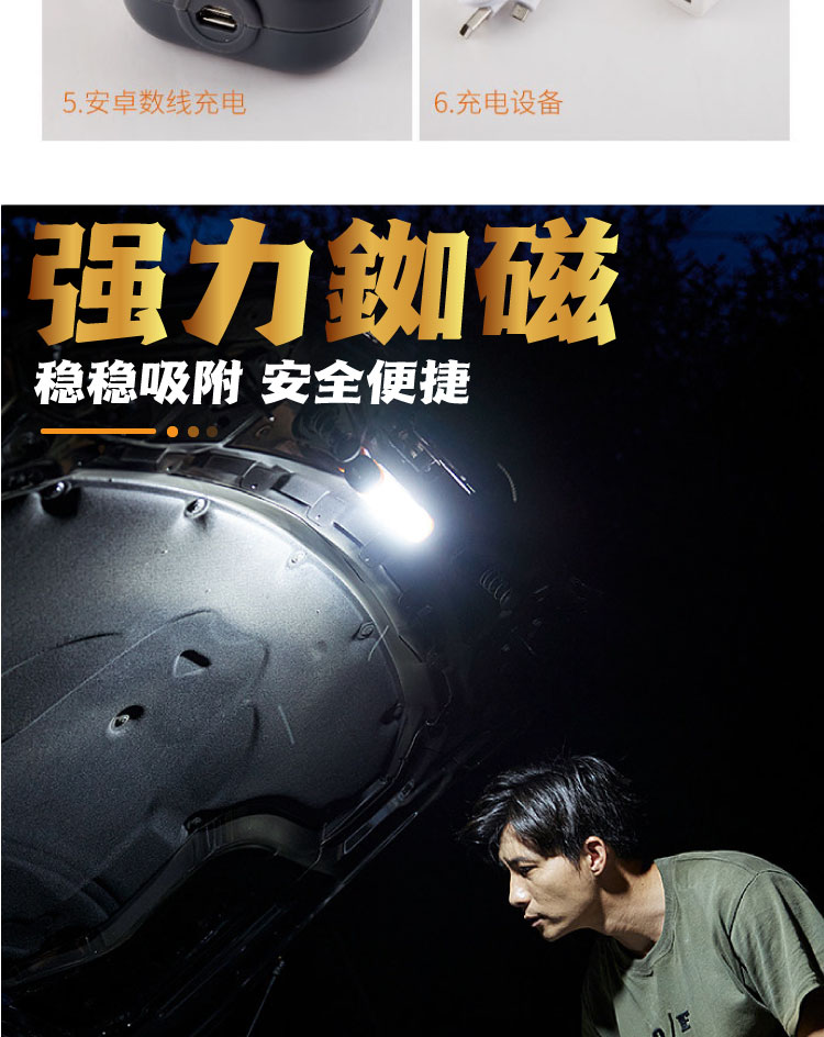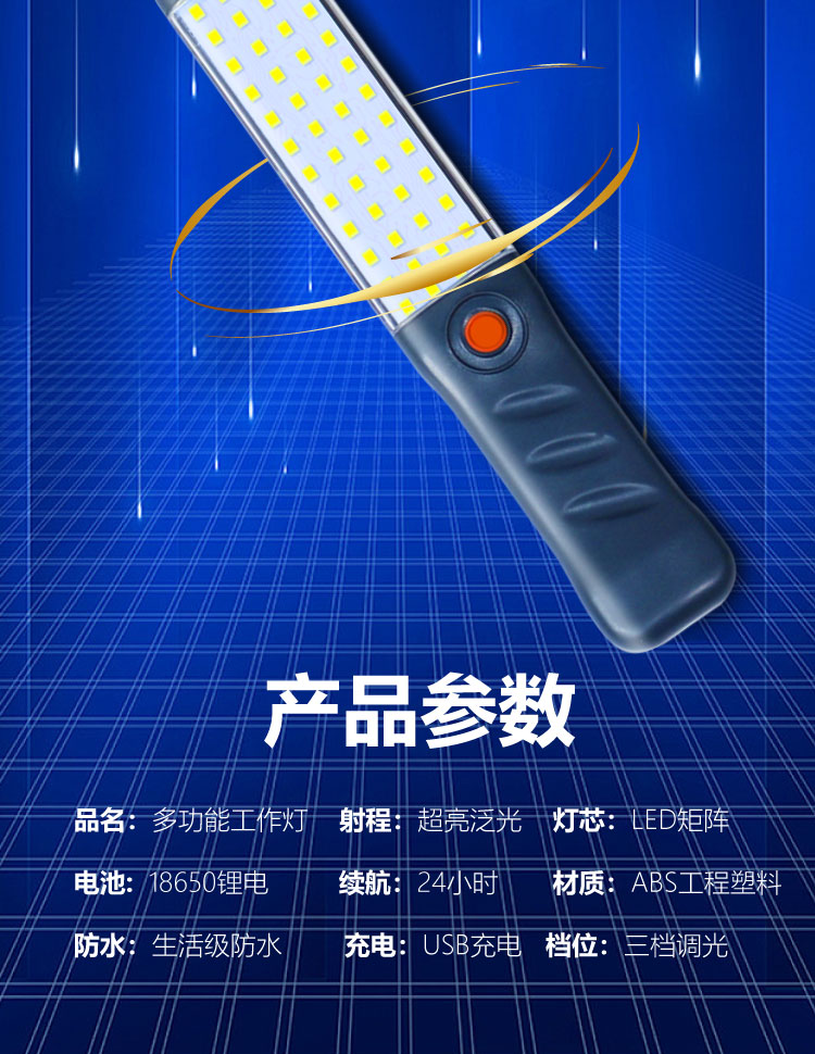海斯迪克 LED强光充电维修灯 单锂电-1000毫安|双磁铁-续航6H 1个