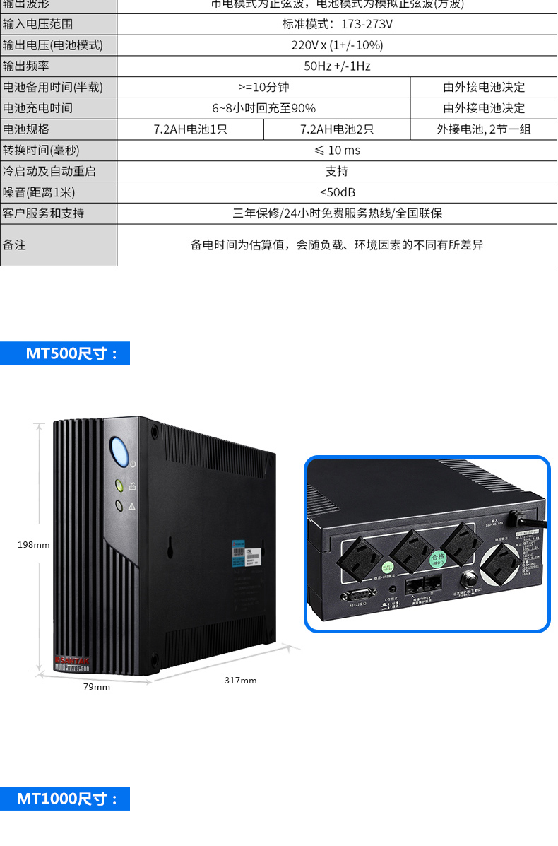 山特 UPS不间断电源 MT500 500VA/300W 1台
