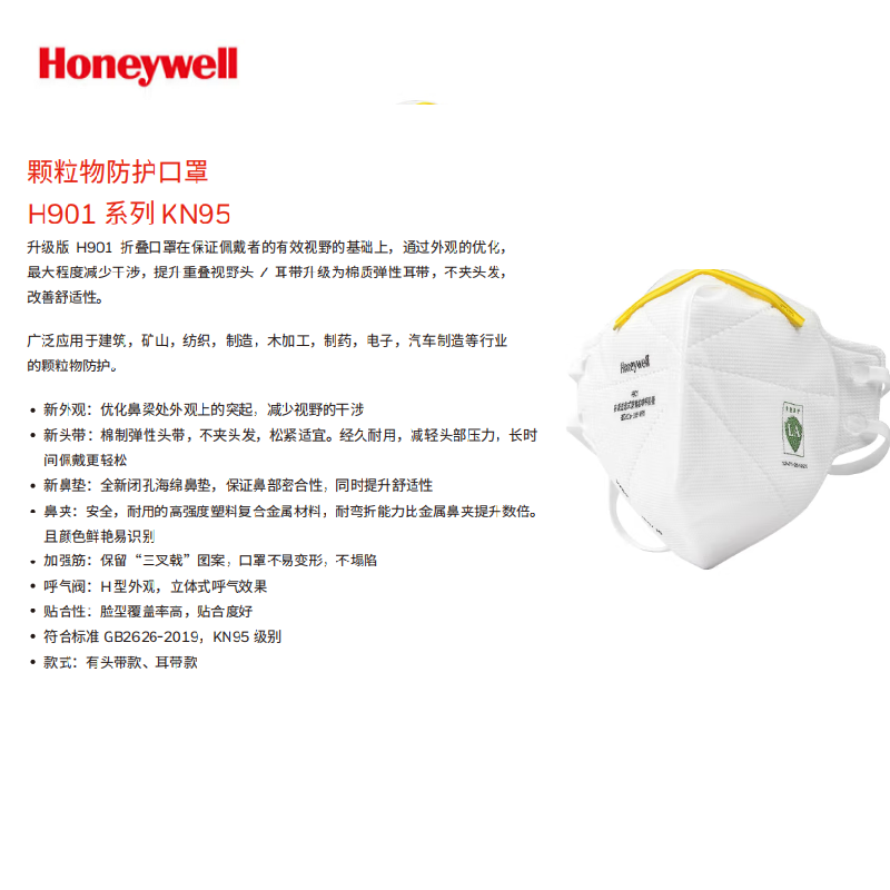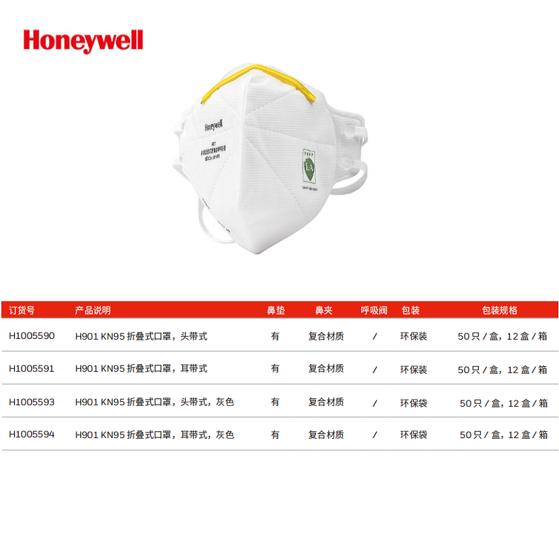 霍尼韦尔 H901系列折叠口罩 H1005590 头带式 1只
