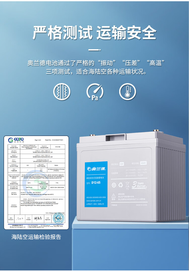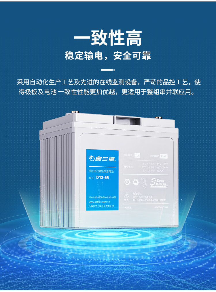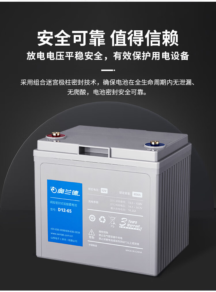 奥兰德 D12系列阀控密封式铅酸电池 D12-38 12V 38Ah(L) 灰壳 1块