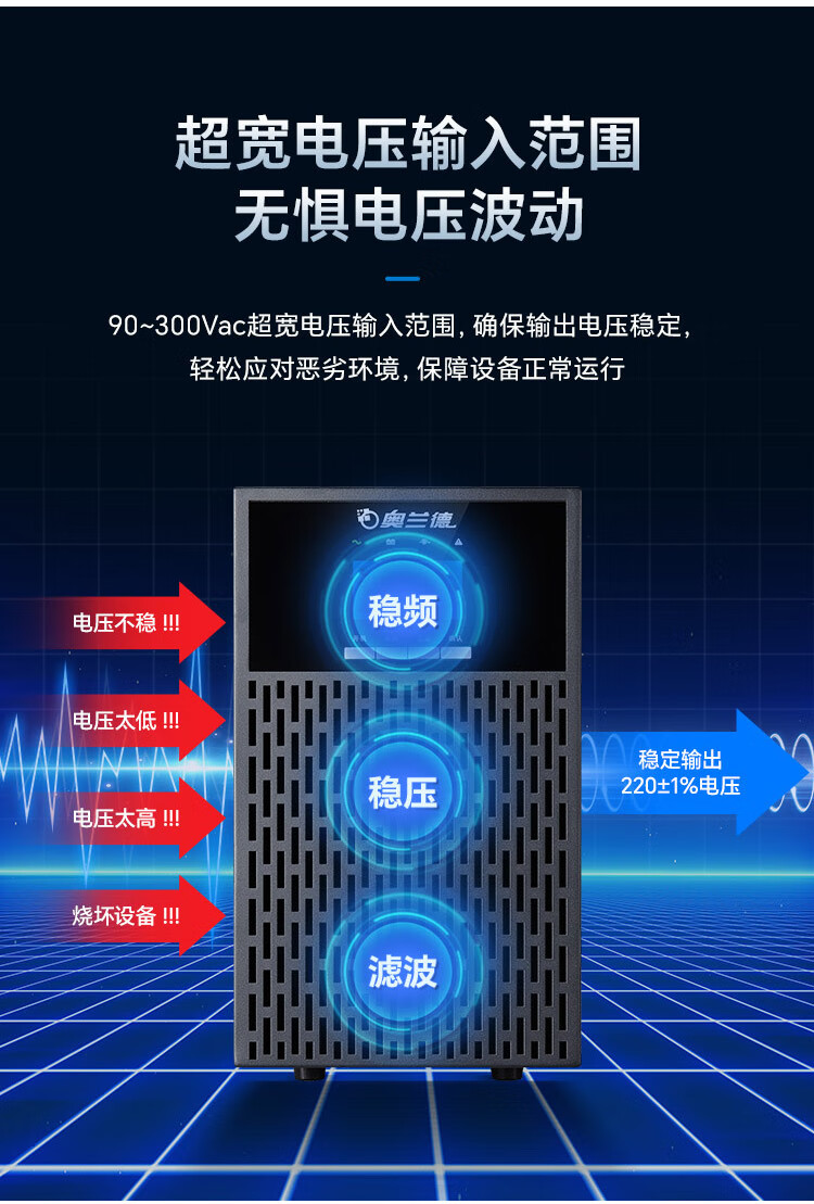 奥兰德 UPS-M系列在线式UPS不间断电源 UPS-M10L 10KVA/9KW 1台
