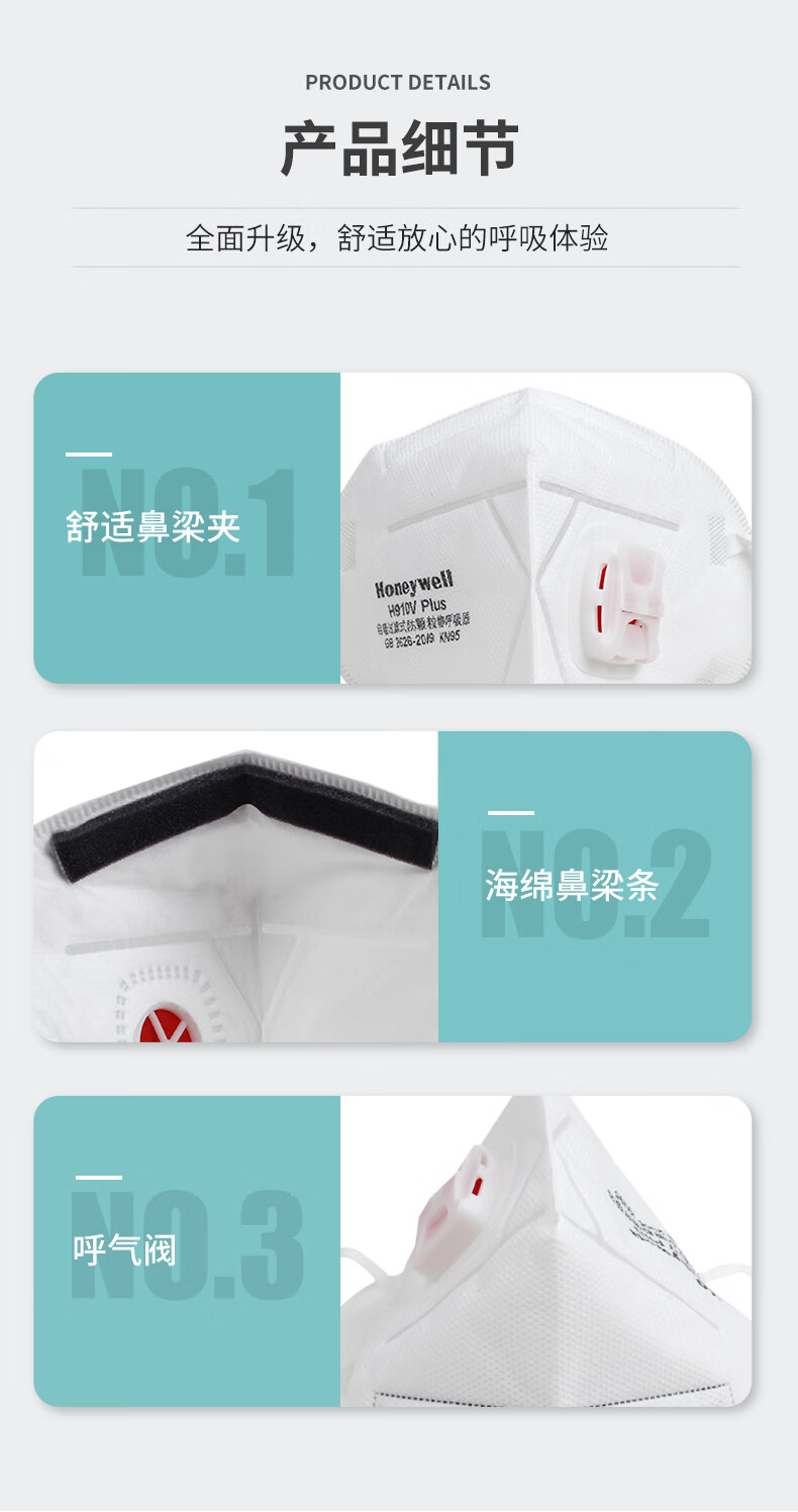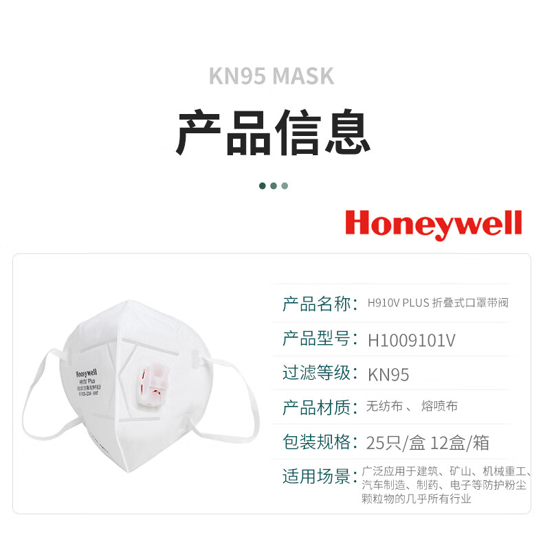 霍尼韦尔 KN95折叠式口罩 KA9101V H910V plus 白色 带阀 耳带式 1只