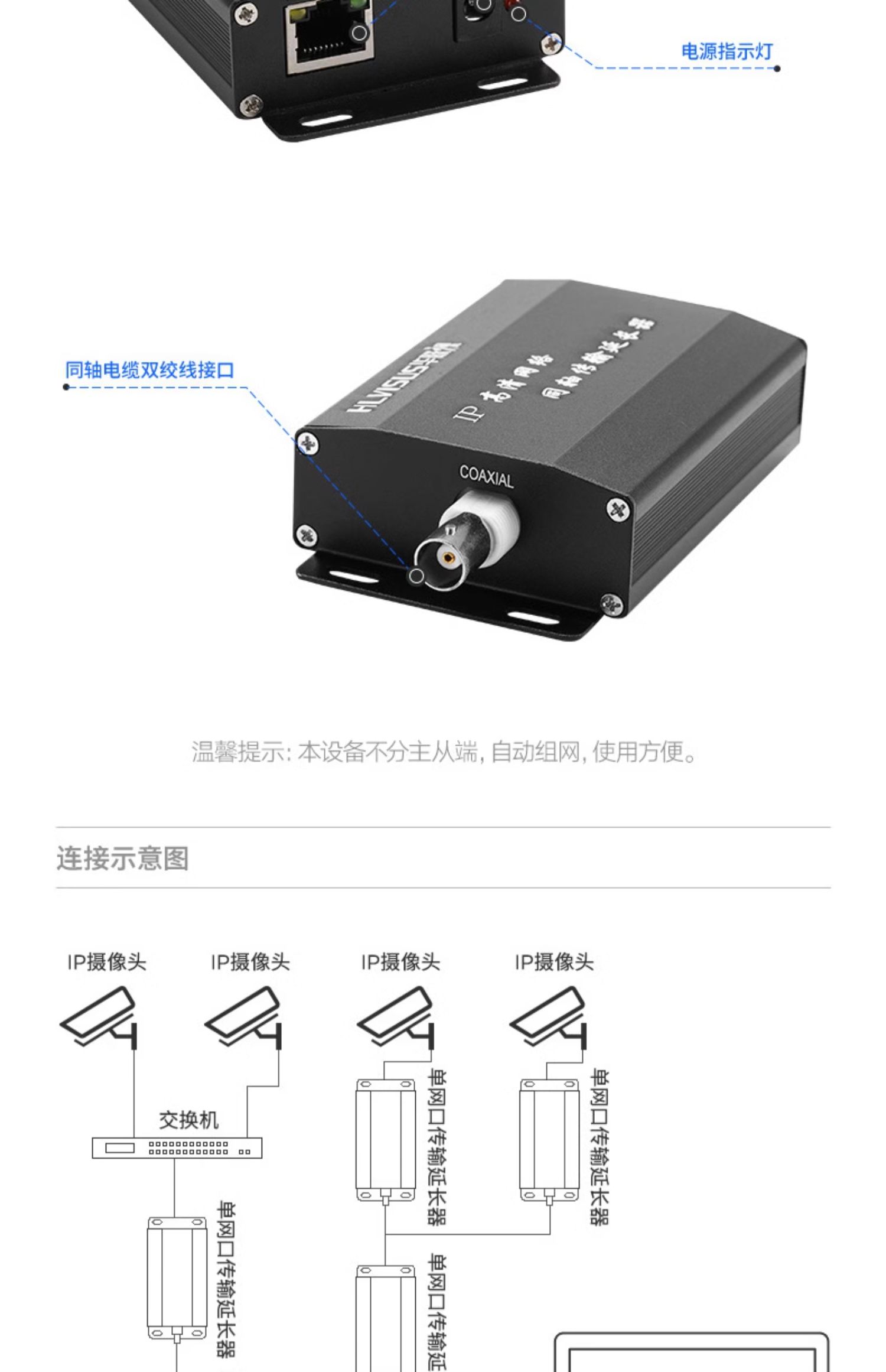 华联视 IP网络同轴传输延长器电梯监控数字传输器 30兆延长器HL-902M 1个