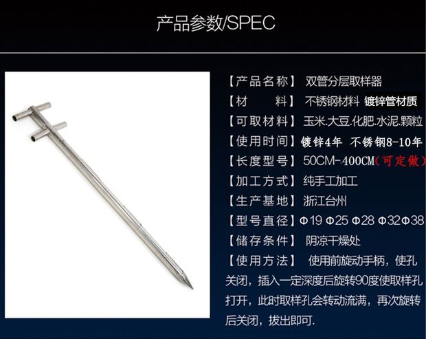 京奥 双管分层取样器 304不锈钢 3孔38mm 长1m 1个
