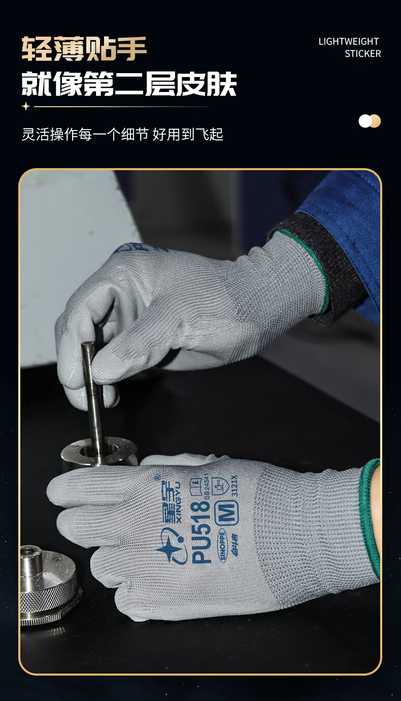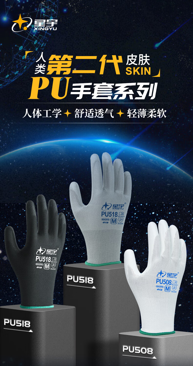 星宇 防静电涂掌手套 PU518 黑色 9码 1双
