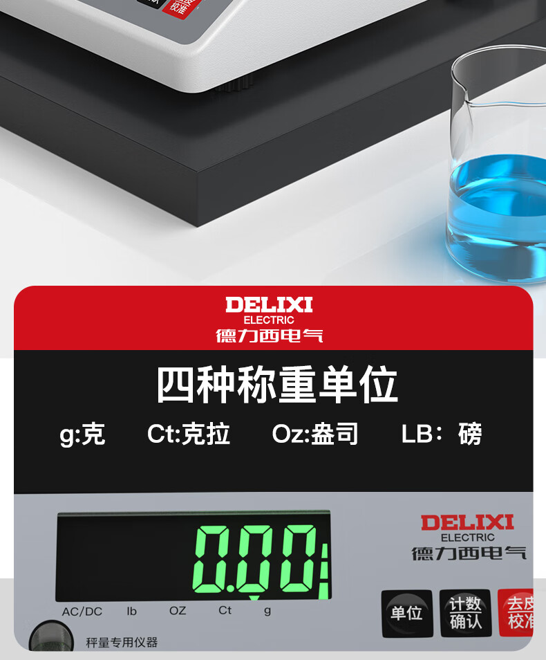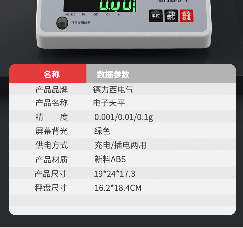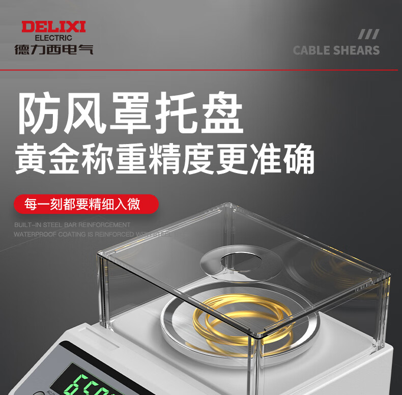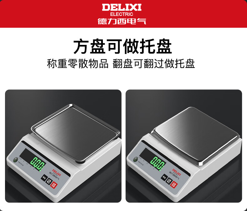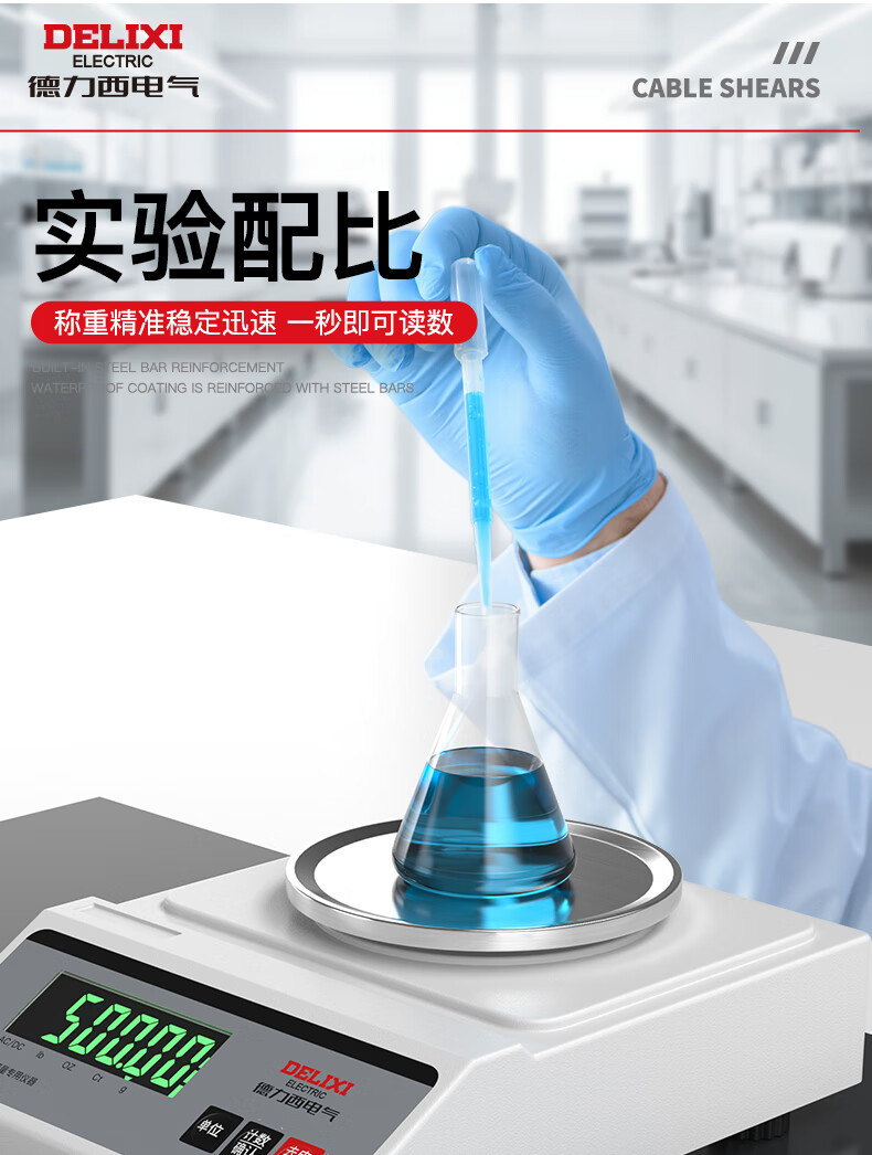 德力西电气 实验室高精度电子天平秤 方盘5kg/0.1g 1个