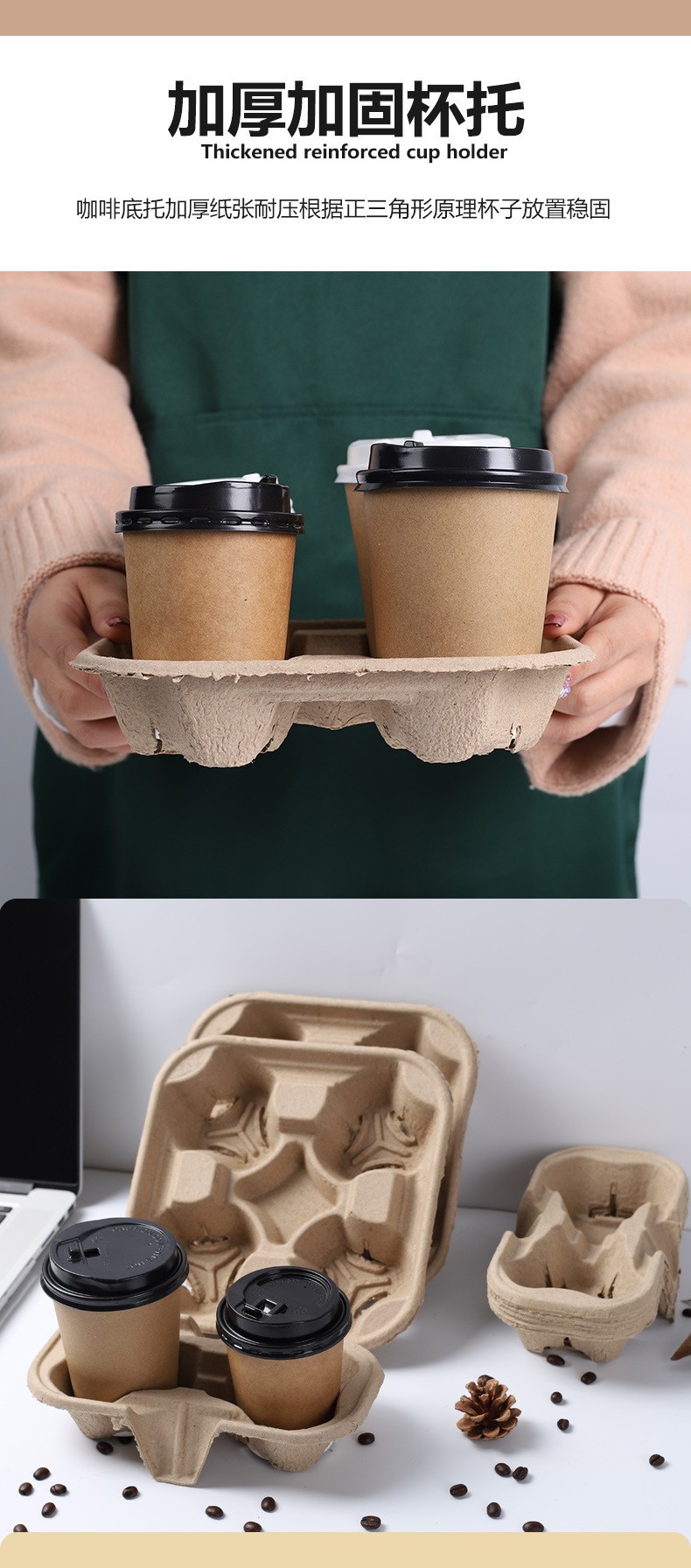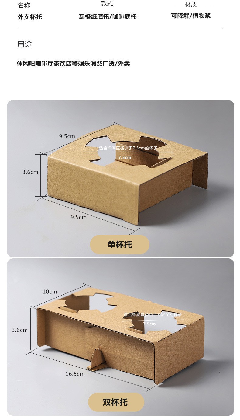 国产通用 一次性纸浆杯托 可撕二杯托 21.5*11.5cm 1个