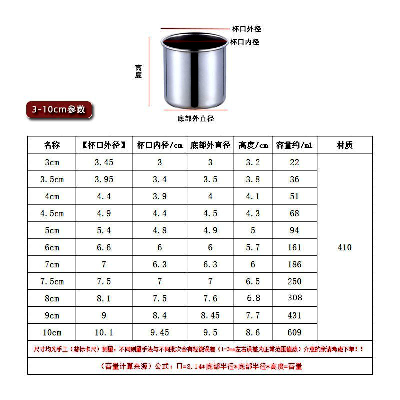 国产通用 不锈钢口杯 7.5cm(口径7.5高6.7cm 杯身7cm) 1个