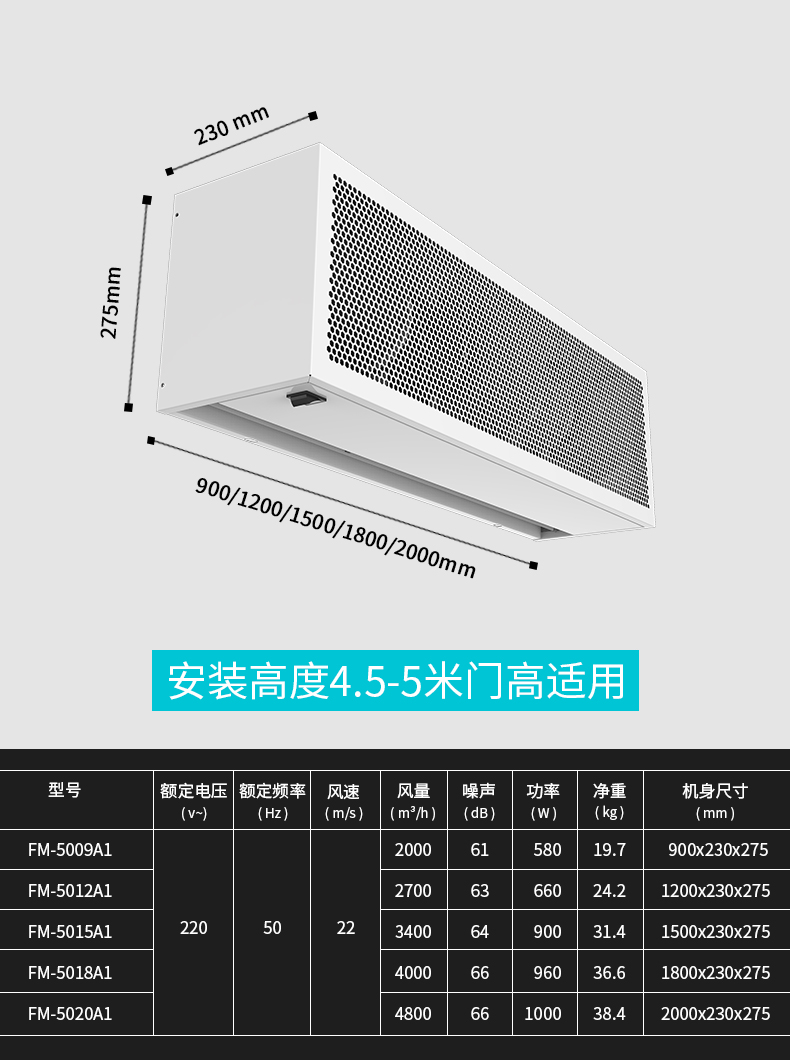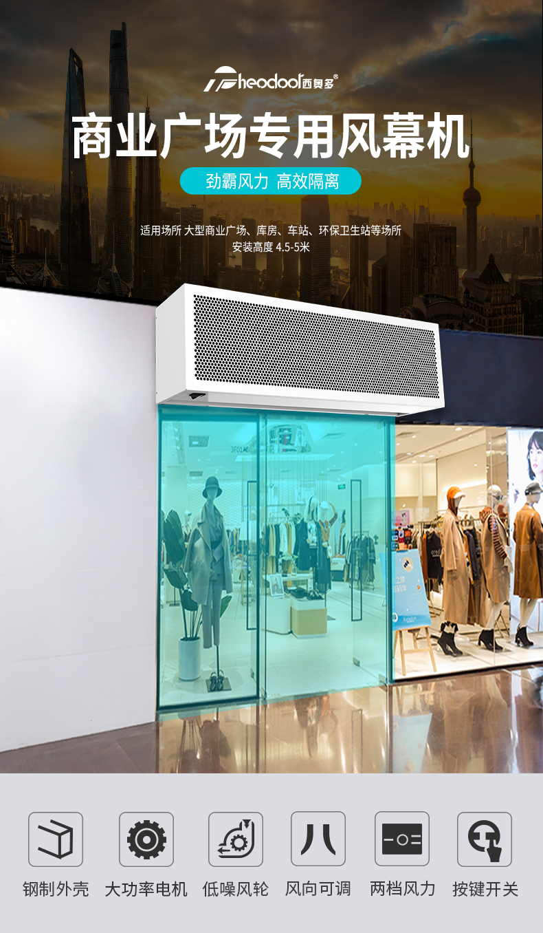 西奥多 商业广场专用风幕机 960W 220V~/50Hz 1800×230×275mm 1台