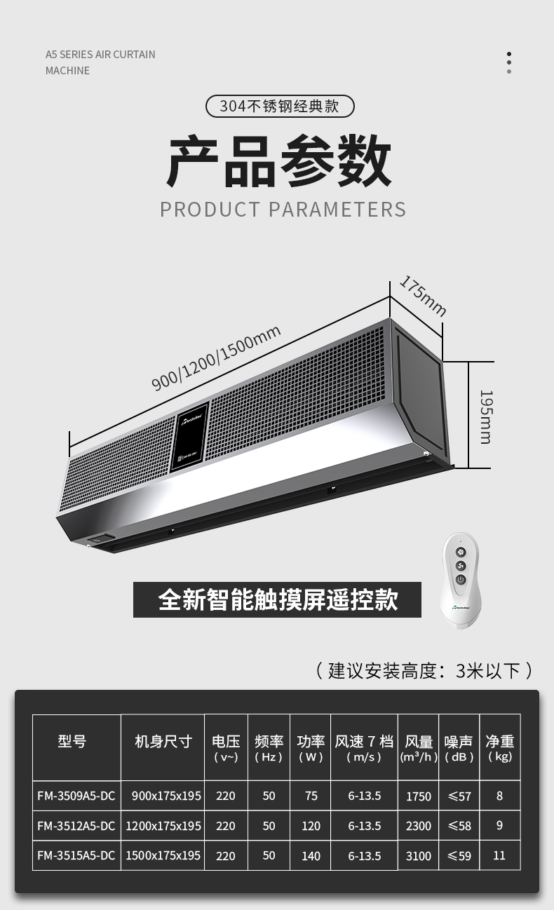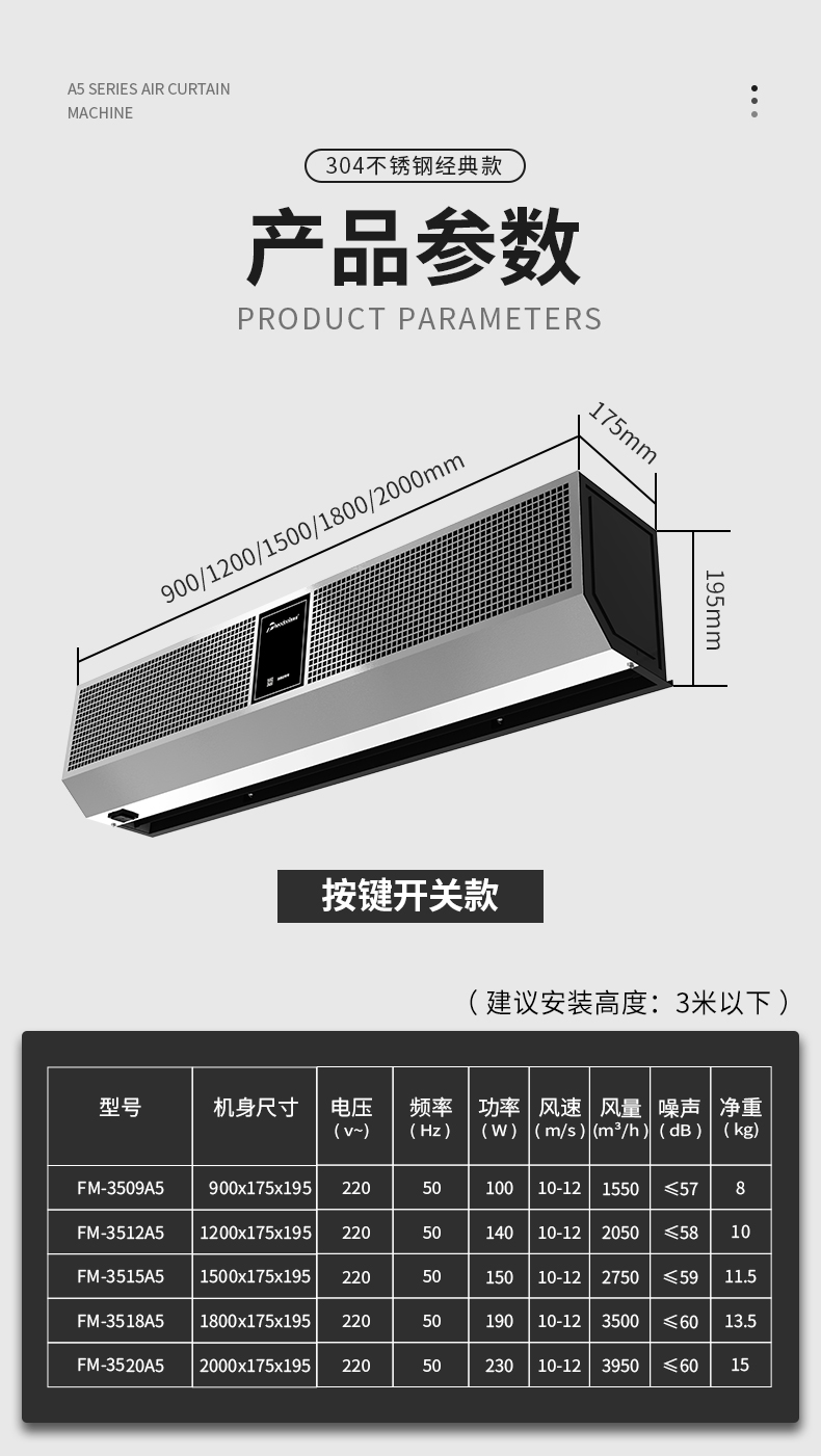 西奥多 A5系列风幕机 FM-3518A5 190W 220V~/50Hz 1800×175×195mm 1台