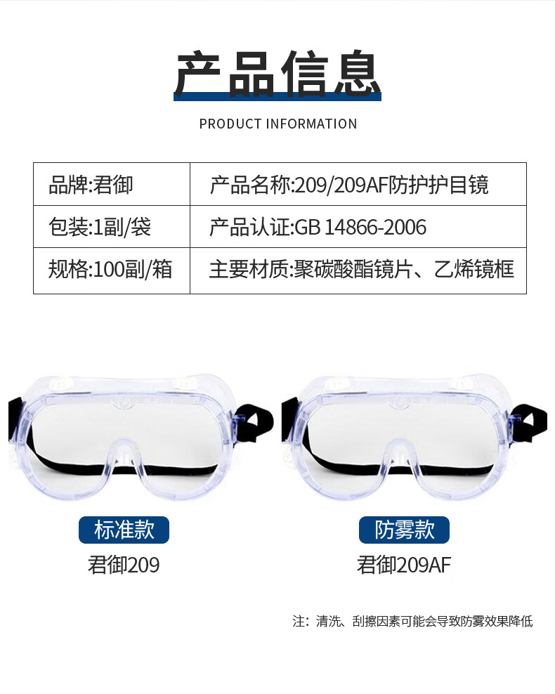 君御 防雾护目镜 209AF 1个