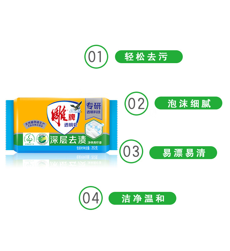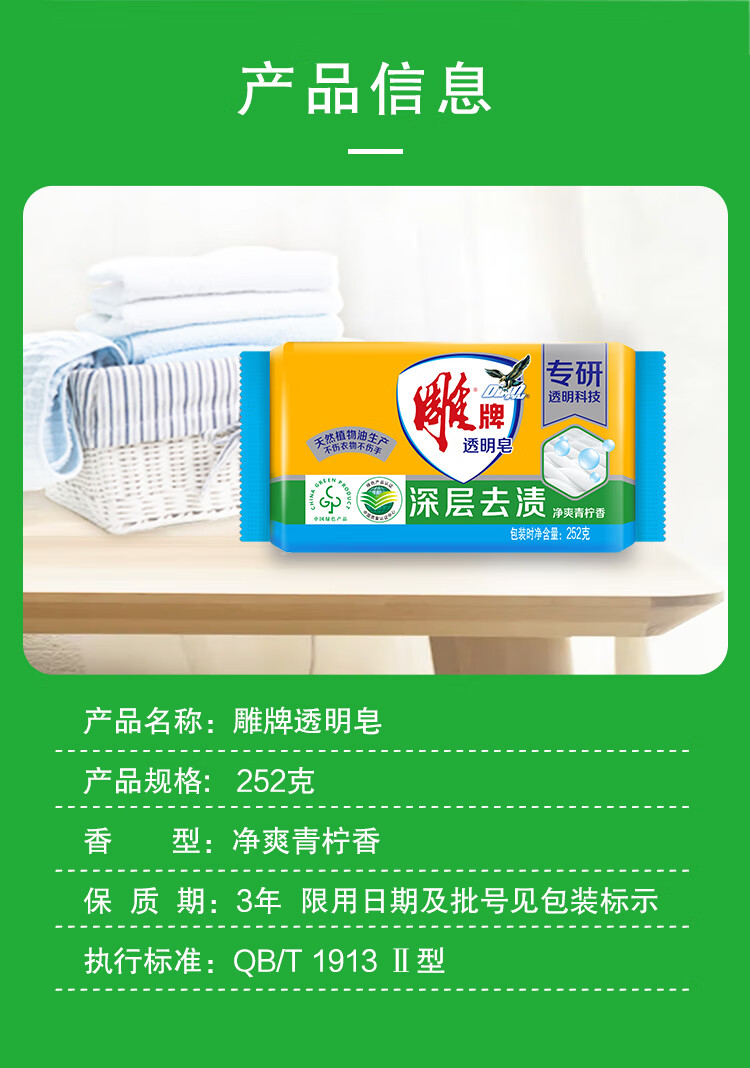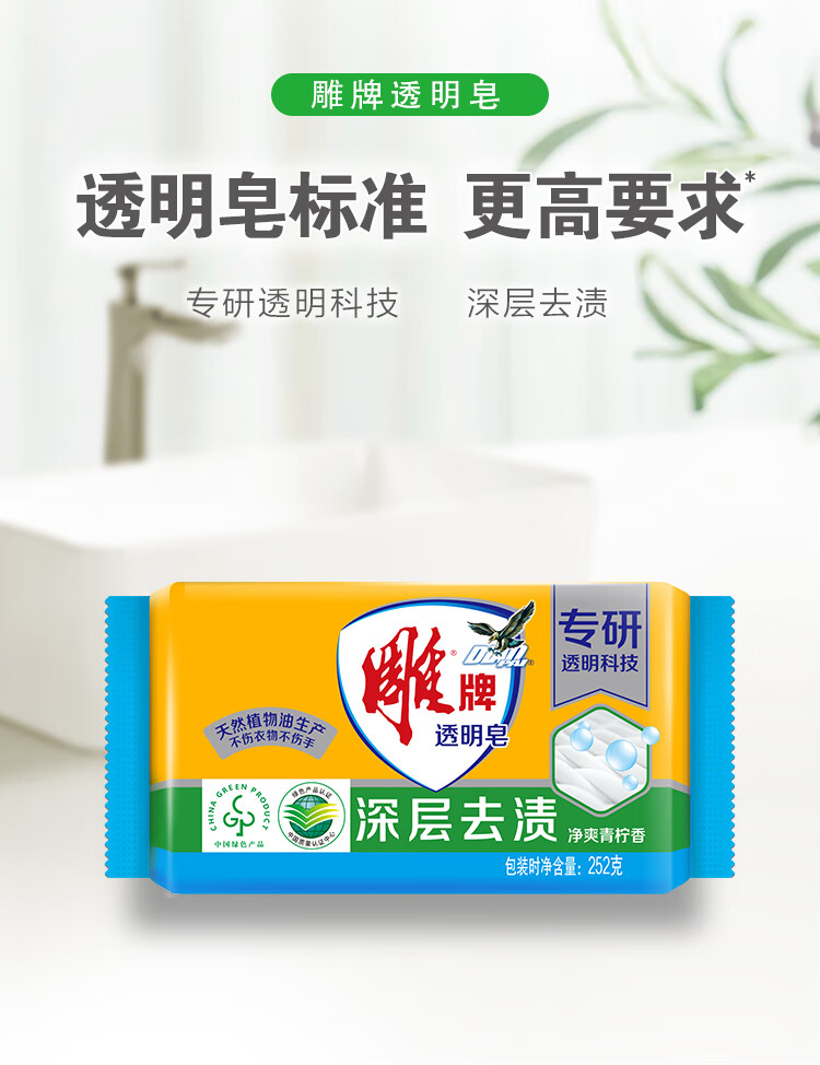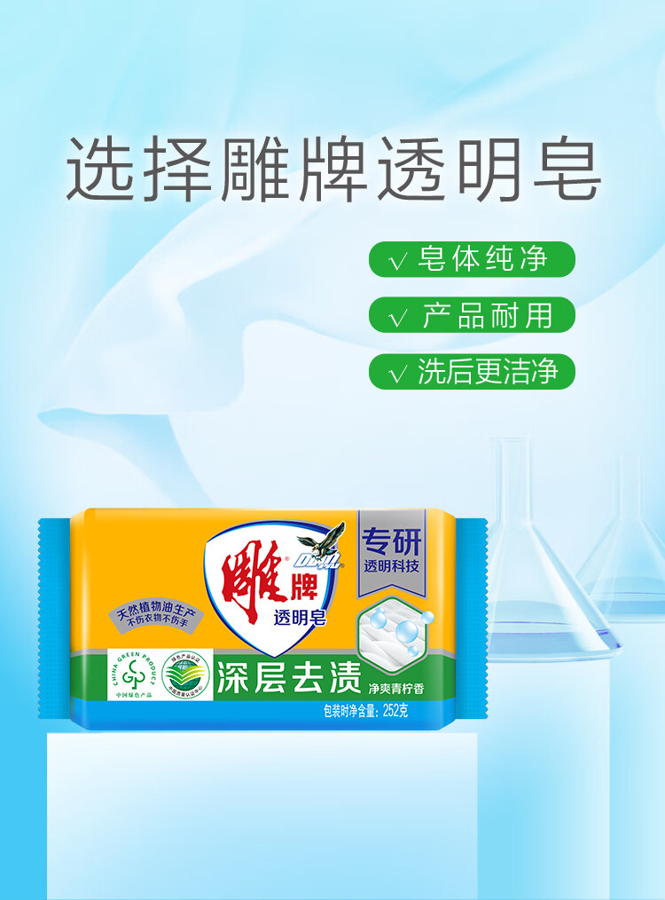 雕牌 净爽青柠香透明肥皂 252g 1块