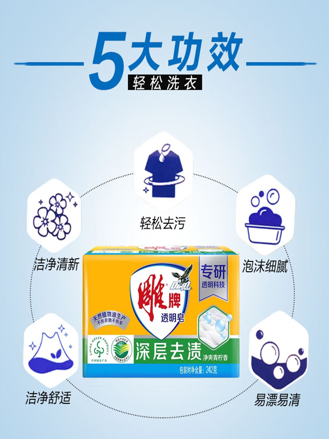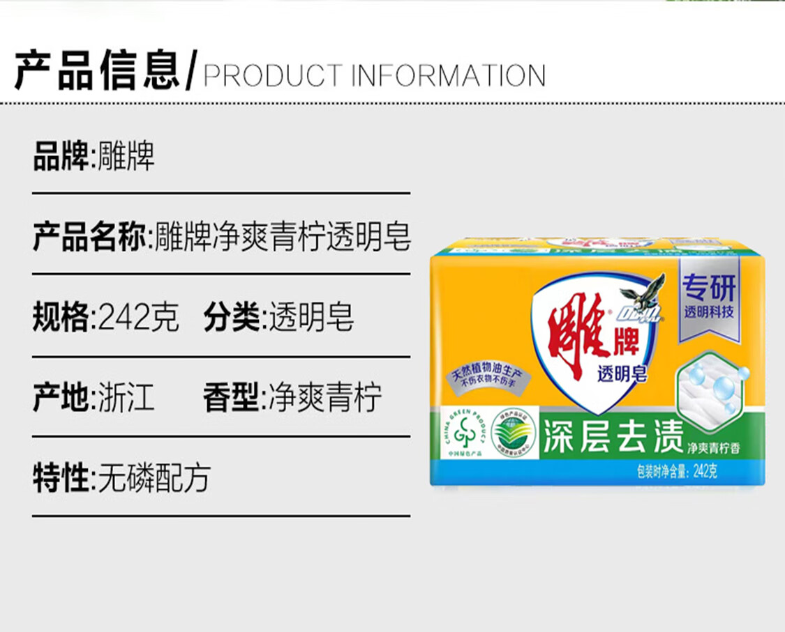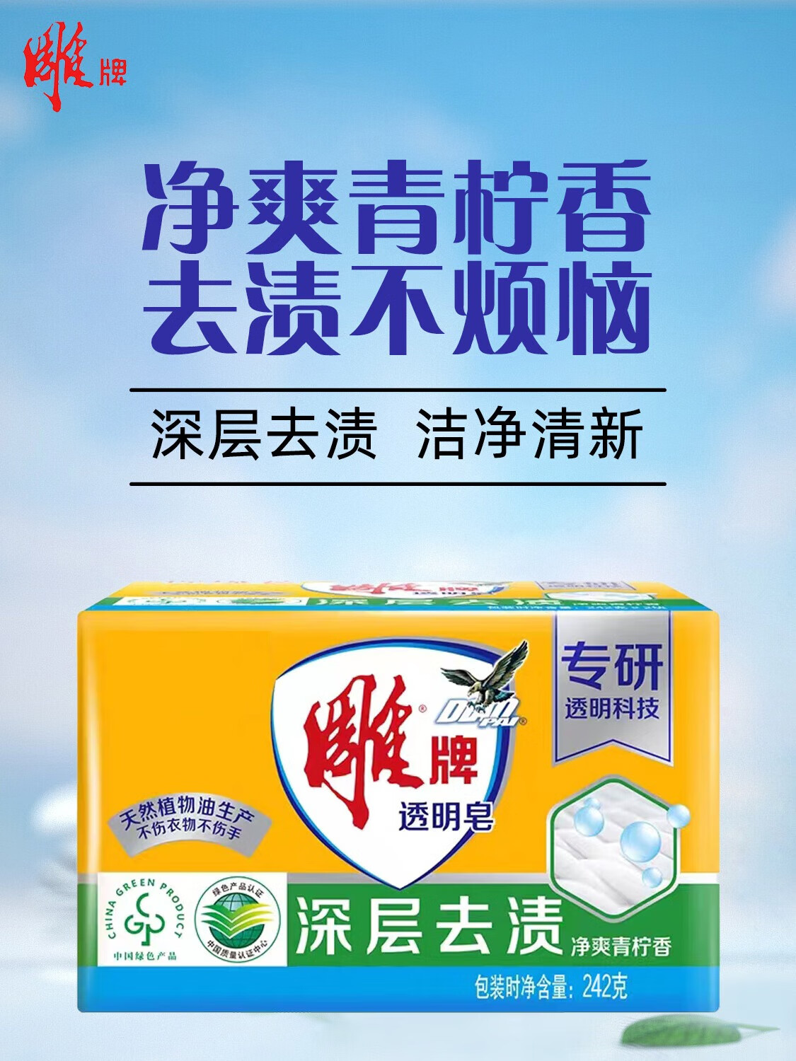雕牌 净爽青柠香透明肥皂 242g 1块