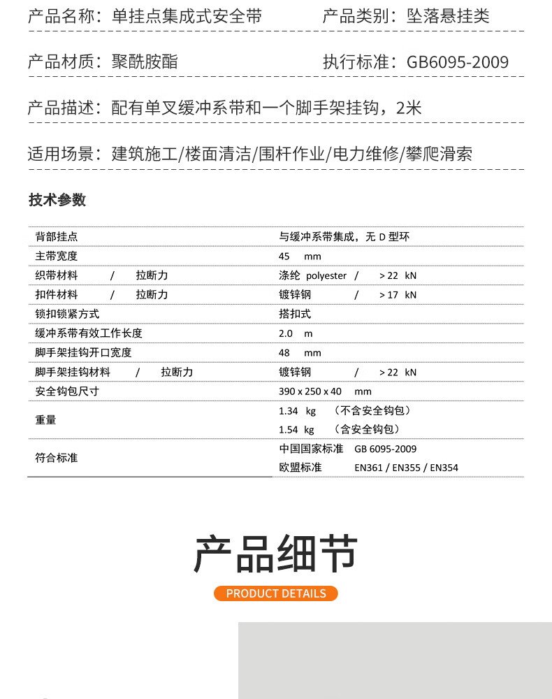 霍尼韦尔 单挂点集成式全身安全带 DL-C1 2米缓冲系带 1条