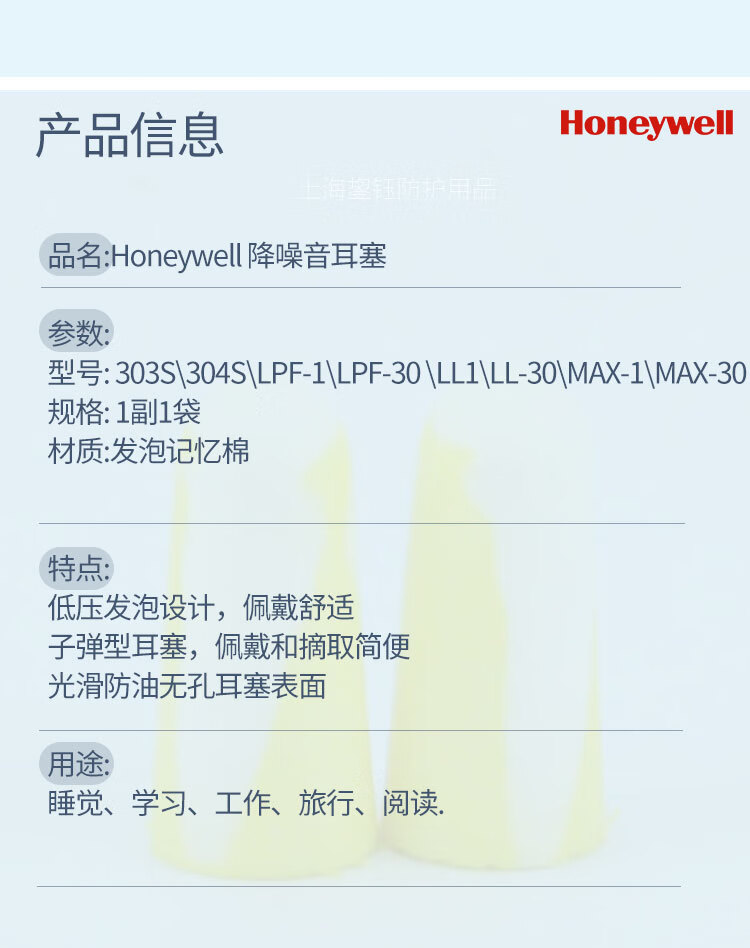 霍尼韦尔 专业降噪耳塞 R303L/985/8 记忆棉 8副 1盒