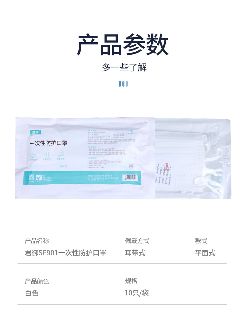 君御 一次性口罩白色 SF901 挂耳式 10只 1袋