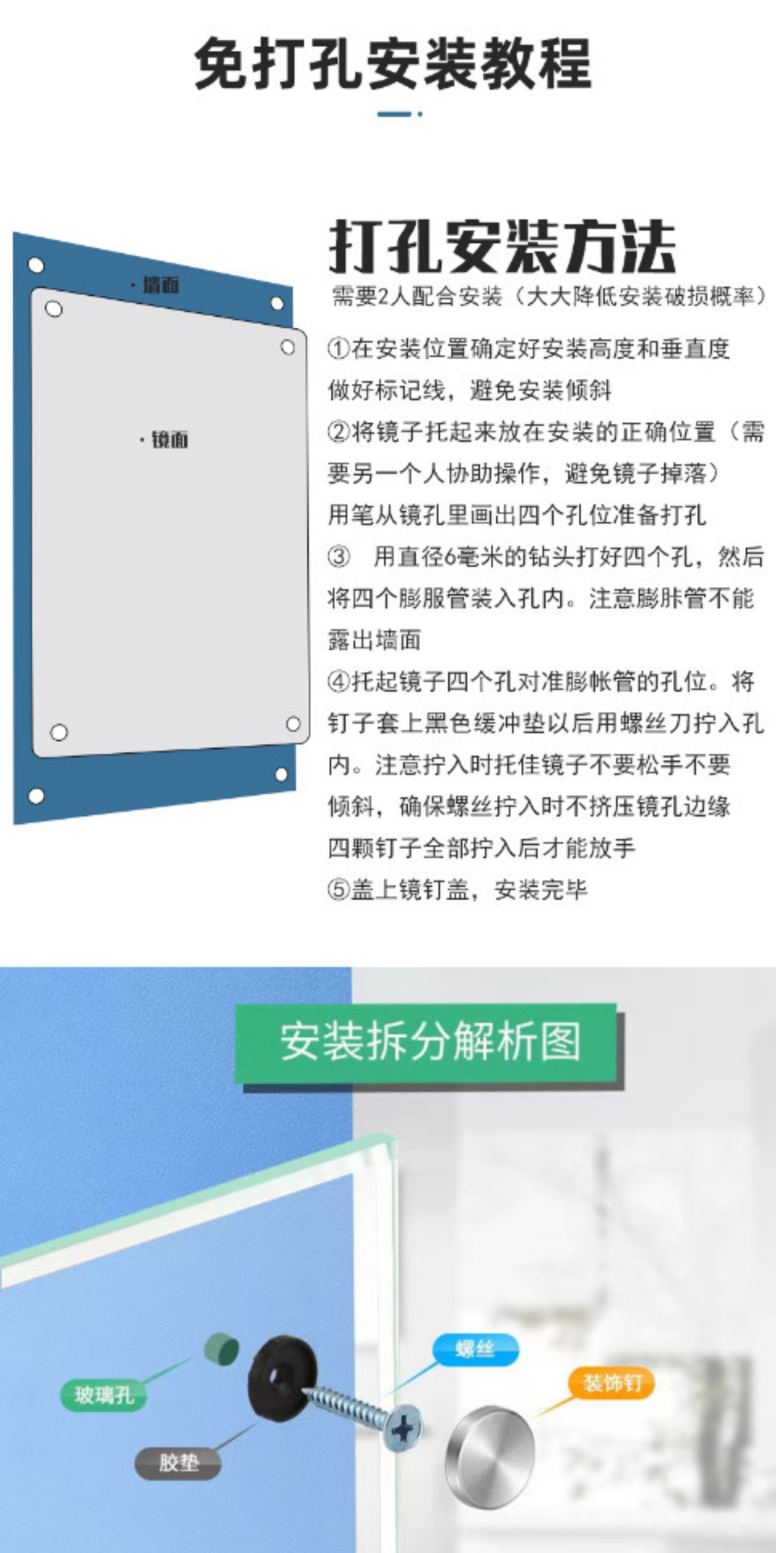 国产通用 高清玻璃全身镜子 防爆圆角斜边 80*100cm 1块