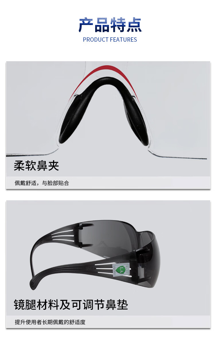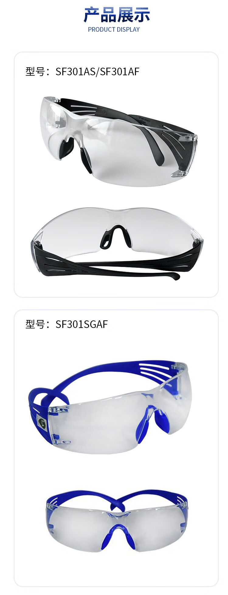 3M 中国款安全眼镜 SF301AS 透明防刮擦镜片 1副