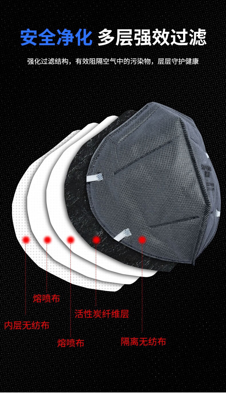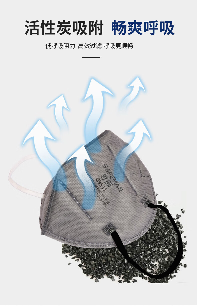 君御 KN95耳带式折叠活性炭口罩 G9531 单片盒装 50只 1盒