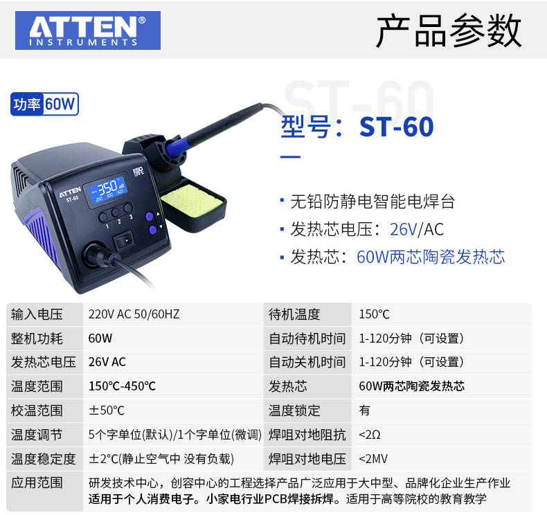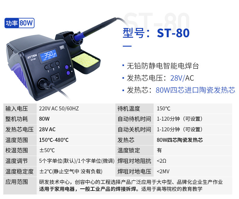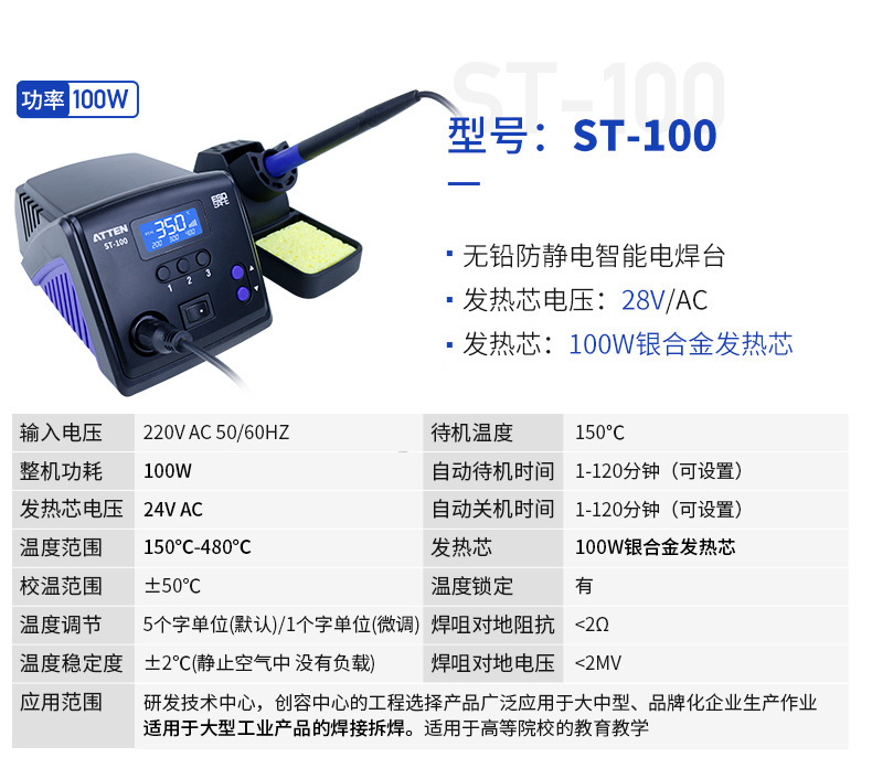 安泰信 无铅防静电智能电焊台 ST-100 220V AC50/60HZ 100W 1件